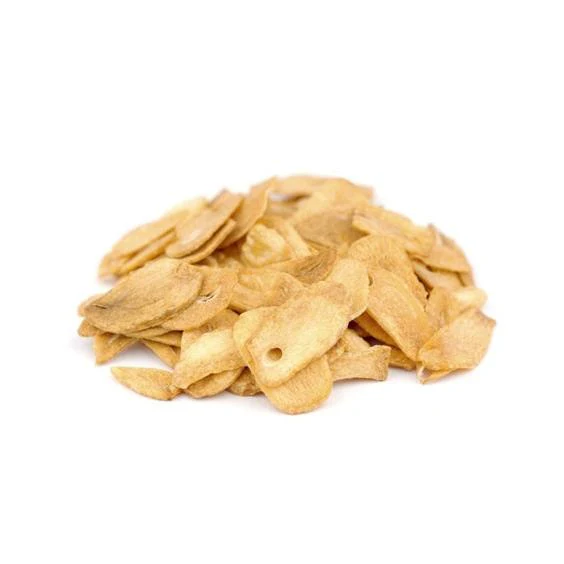Ajo deshidratado cortado en hojuelas, libre de cáscara y raíz.