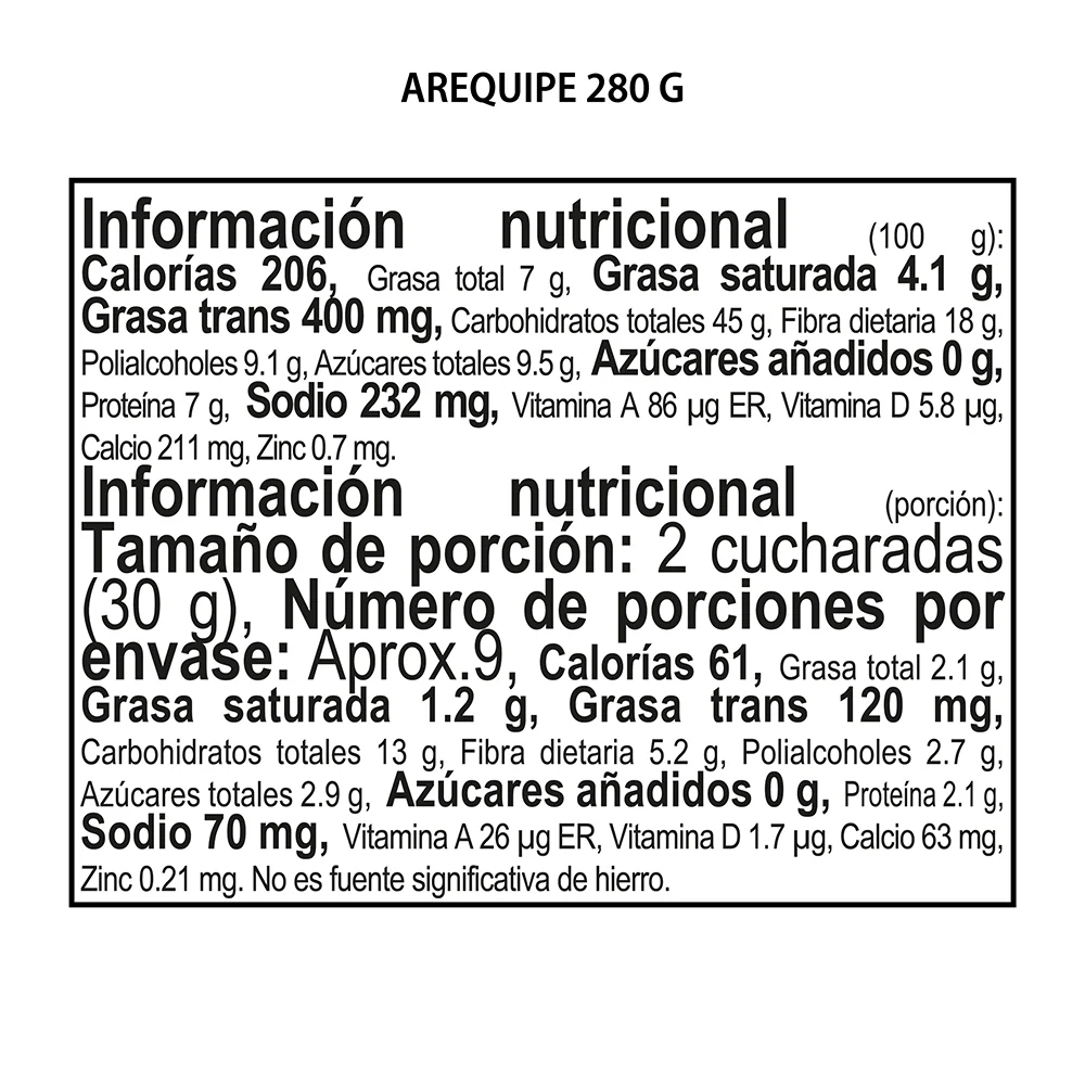 Deléitate con nuestro delicioso Arequipe o el también llamado dulce de leche elaborado sin azúcar adicionada. De textura blanda espesa. Sólo 60 calorías por porción.