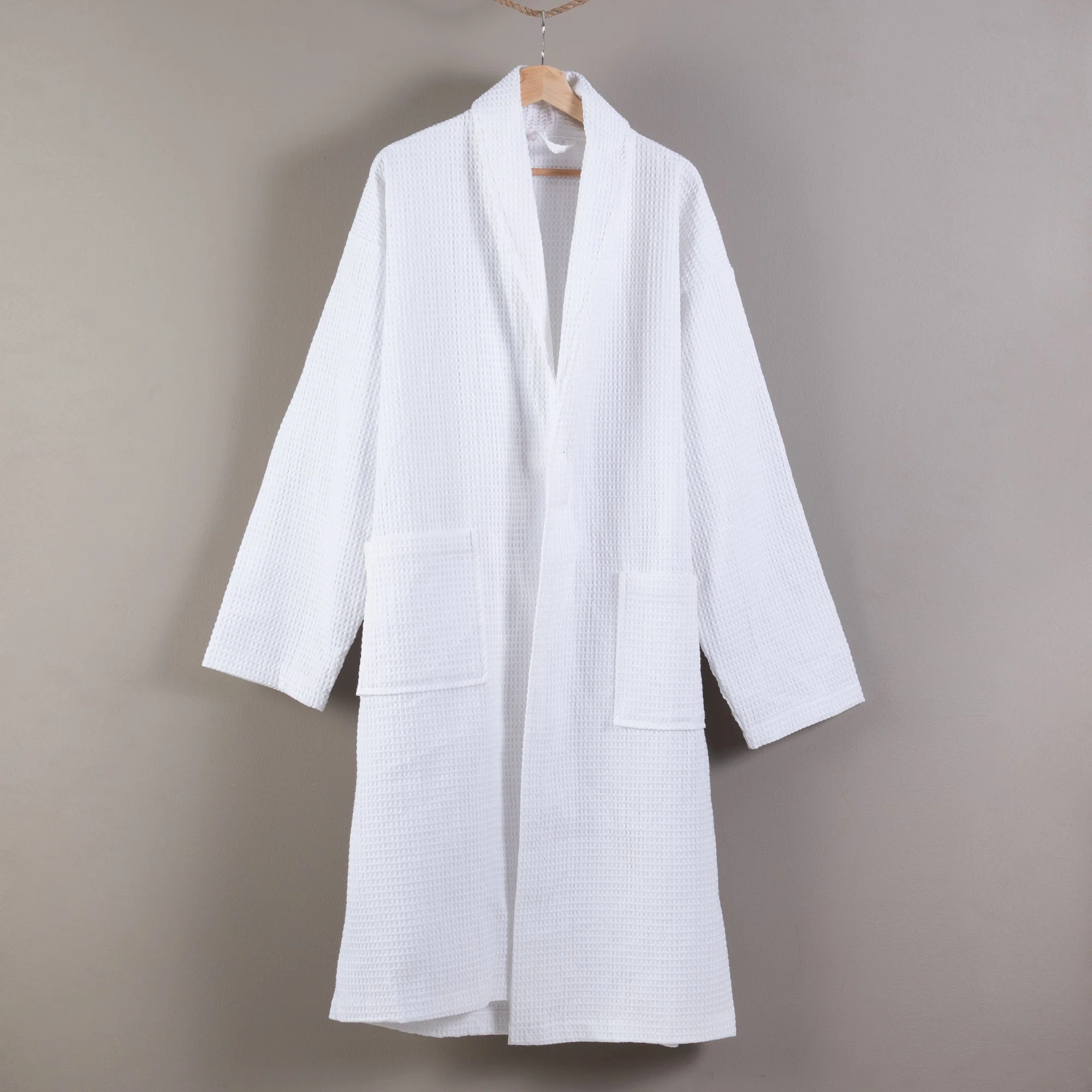 Disfruta de la suavidad y comodidad que solo una bata de baño de 100% algodón puede ofrecer. Su tejido tipo waffle no solo aporta un look elegante y fresco, sino que también es ligero, absorbente y muy confortable.