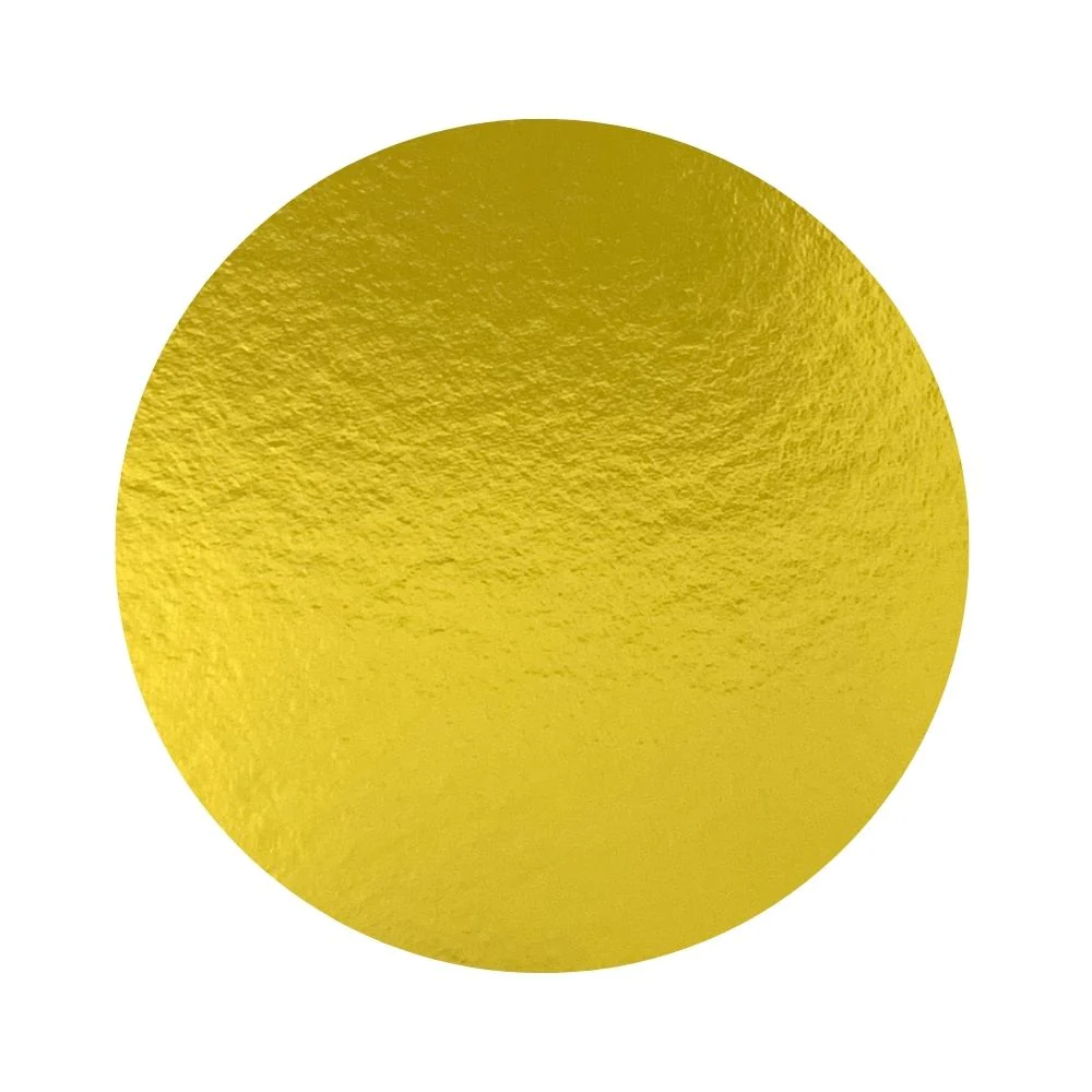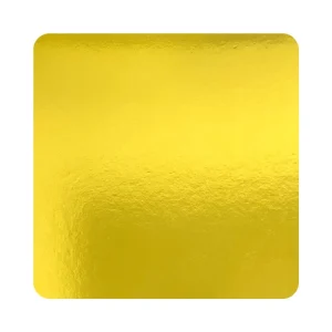 Disco o blonda en cartón metalizado con extremos lisos para usar como base en tortas, postres, tartas, entre otros. Además, son ideales para usar entre pisos de tartas y así conseguir más estabilidad. Tiene una cara superior metalizada apta para alimentos y otra cara inferior de cartón blanco.