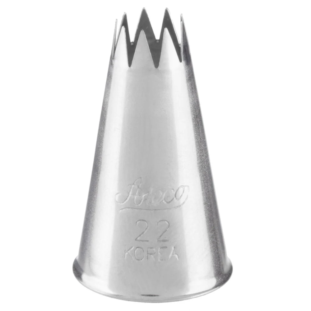 Boquilla Ateco con punta de estrella cerrada, especial para decorar tus tortas, cupcakes, pasteles, galletas y brownies. Punta con forma de estrella seis puntas que le permite verse más redondeada. Ideal para hacer estrellas, flores pequeñas, bordes, rellenar figuras, zigzag, conchas, cordel, guirnaldas, lazos y enroscados.