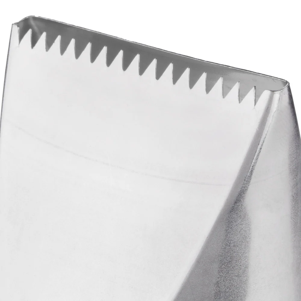 Decore fácilmente pasteles, cupcakes, tartas y más con esta punta de Ateco. Boquilla plana por un lado, rizada por el otro, ideal para aplicar cremas y facilitar el alisado de los pasteles o tortas. Las puntas se ajustan a un acoplador de tamaño estándar. Fabricado en acero inoxidable.
