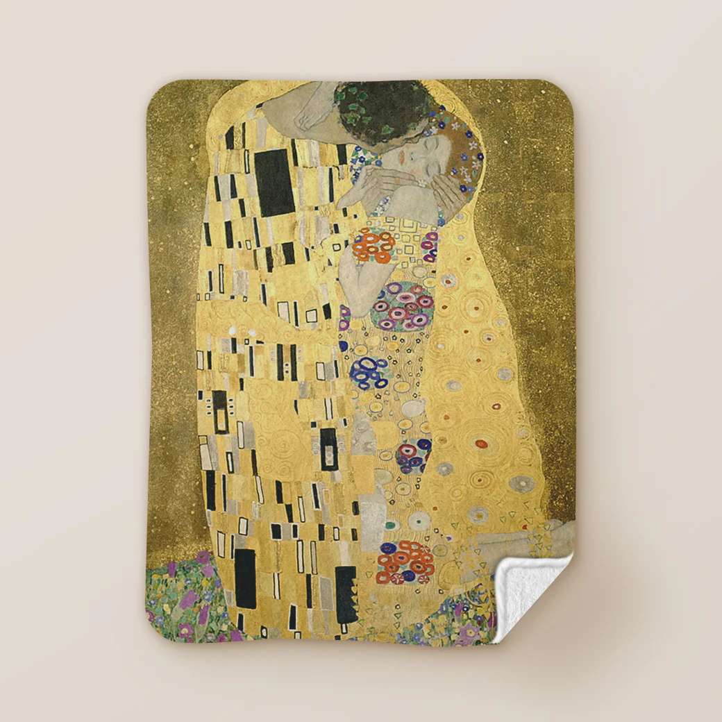 ¡Lleva el arte contigo a cualquier lugar con una frazada de tu pintura favorita! Compra la frazada de «El beso» la obra más conocida del artista Gustav Klimt.