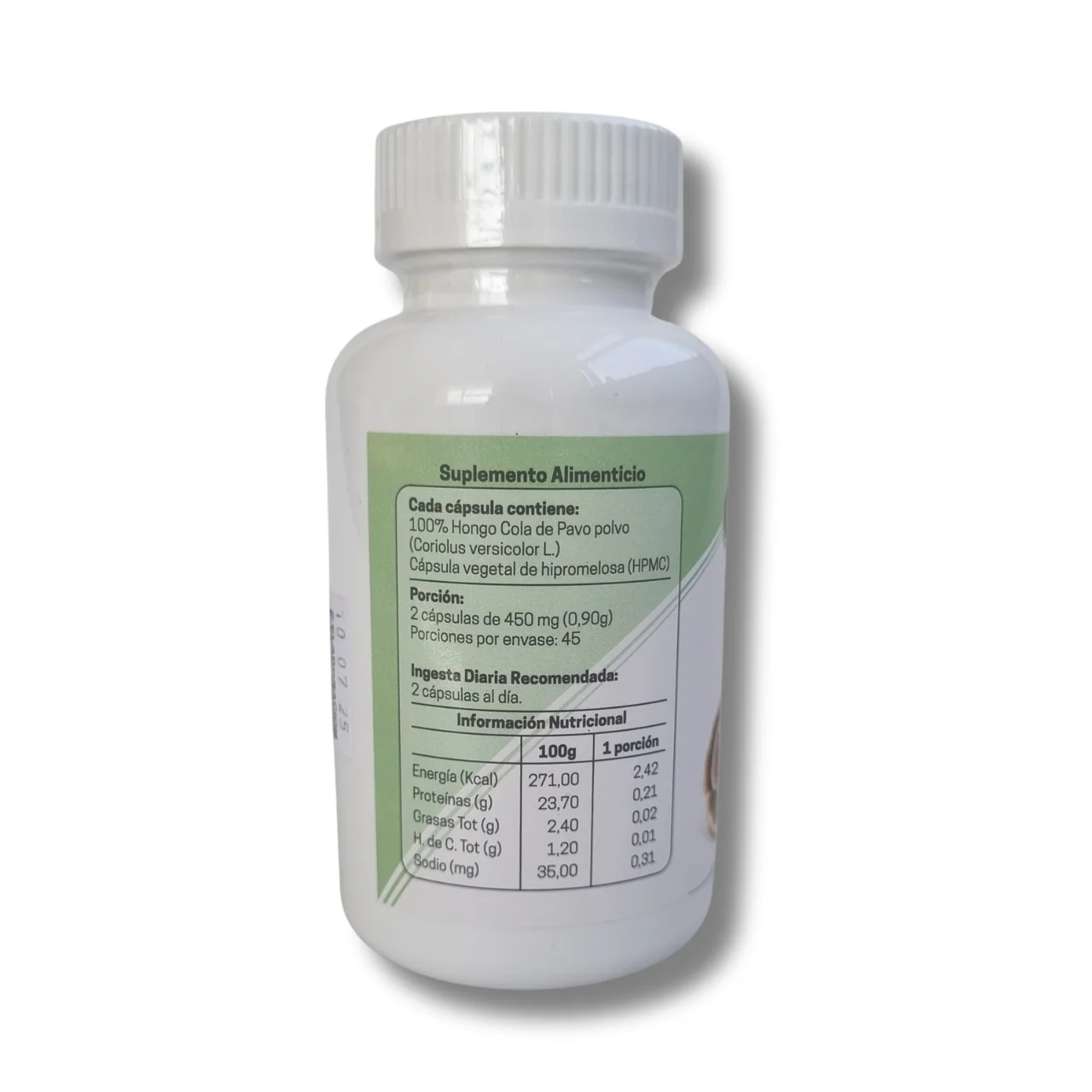 100% Hongo Cola de Pavo (Coriolus versicolor L.) – 900mg por porción (2 cápsulas)