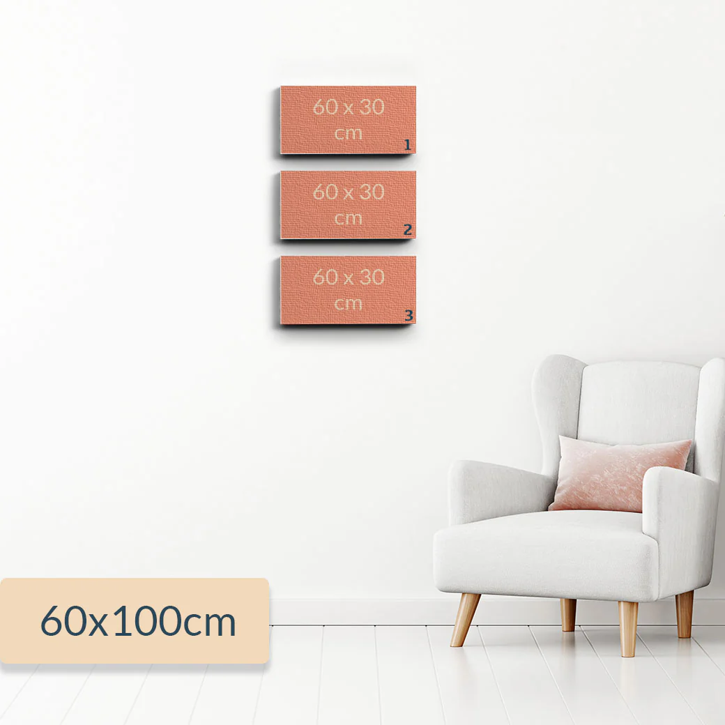 -Collage 60×100 cm en su medida total. Incluye tres cuadros de 60×30 cm