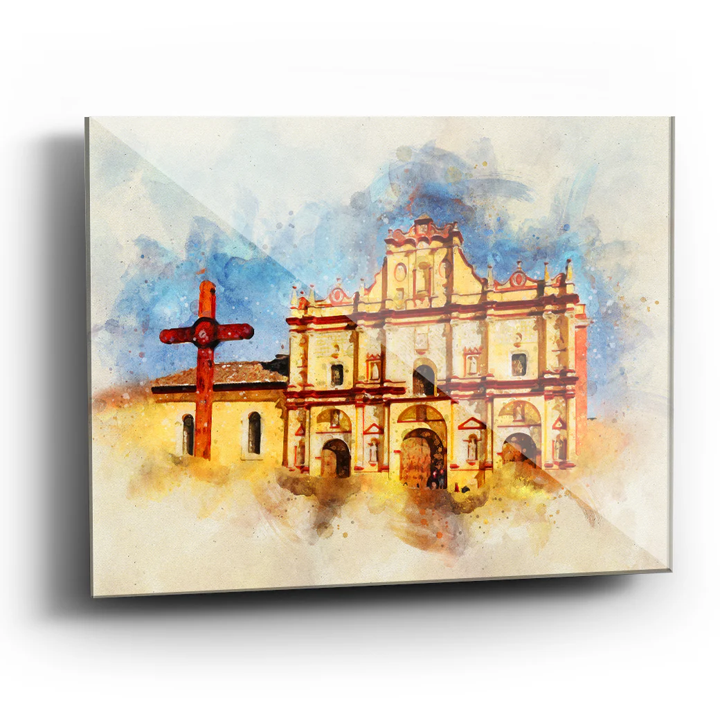 «Retoque digital de acuarela, de la iglesia más relevante de San Cris». Saas.¡Compra un cuadro decorativo de la Catedral de San Cristóbal de las Casas!