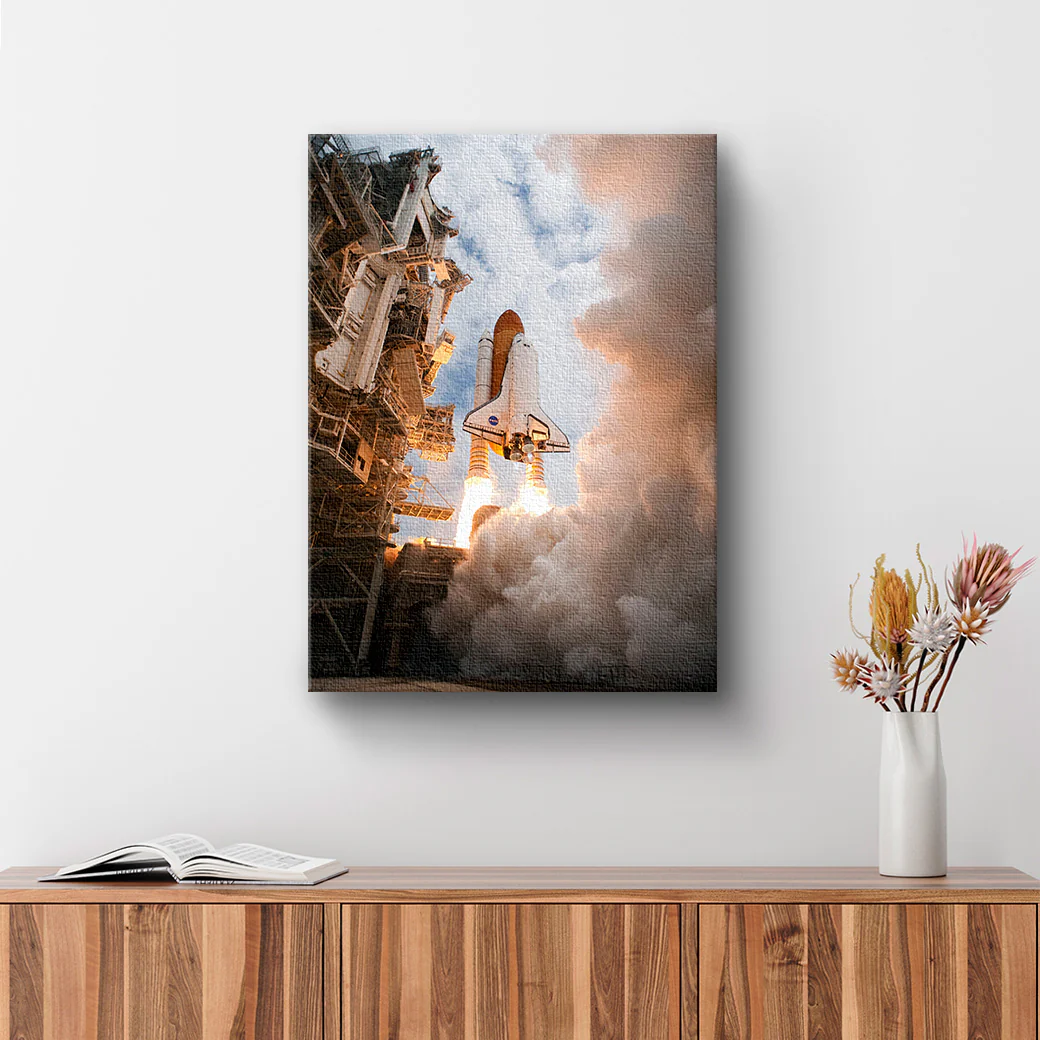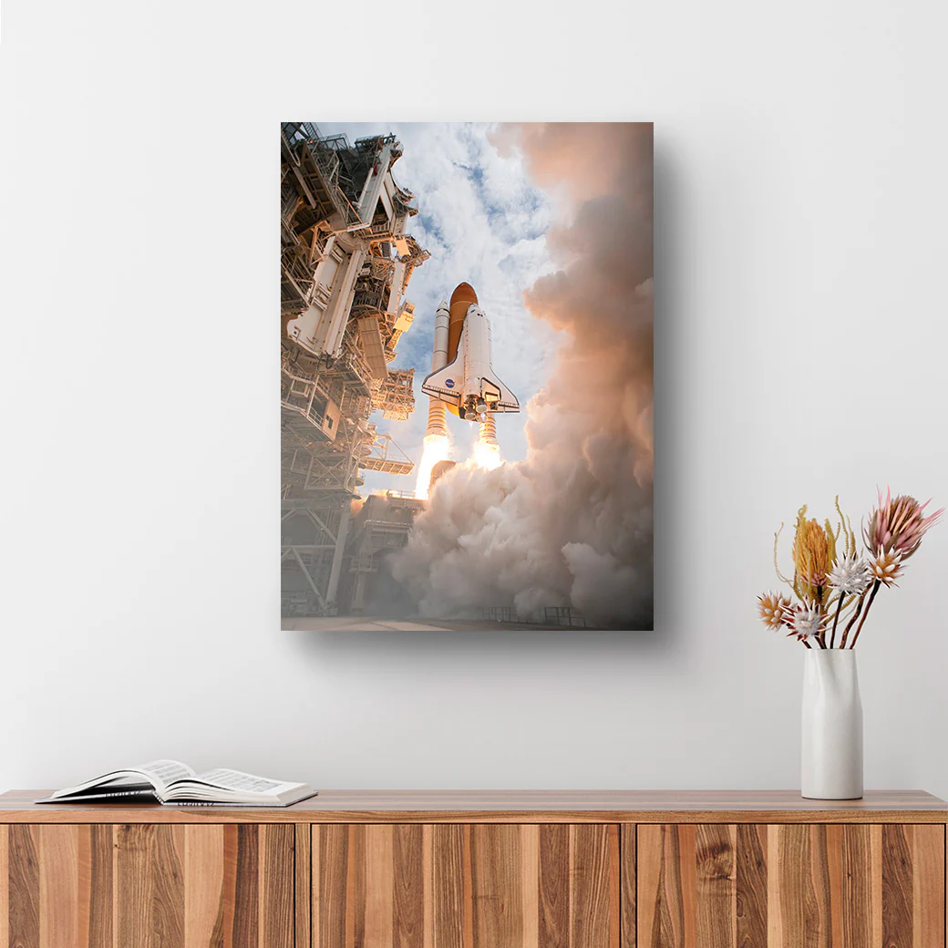¿Eres fan del espacio, astronautas y la NASA? ¡Entonces este cuadro es para ti! Una fotografía del despegue de un cohete espacial.