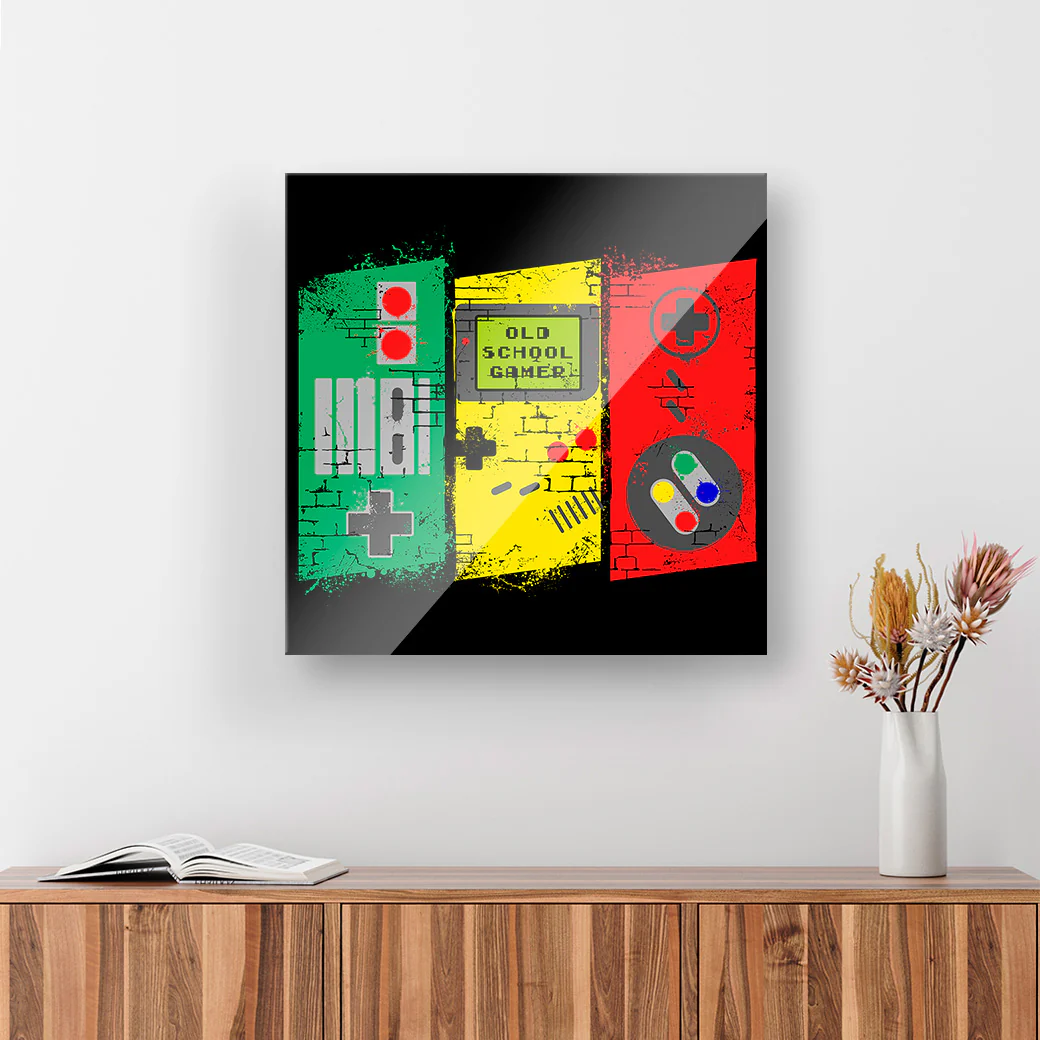 Este cuadro decorativo tiene una ilustración de tributo a consolas de Videojuegos que marcaron historia, por Rogelio I. Luis. Ideal para todos los gamers.
