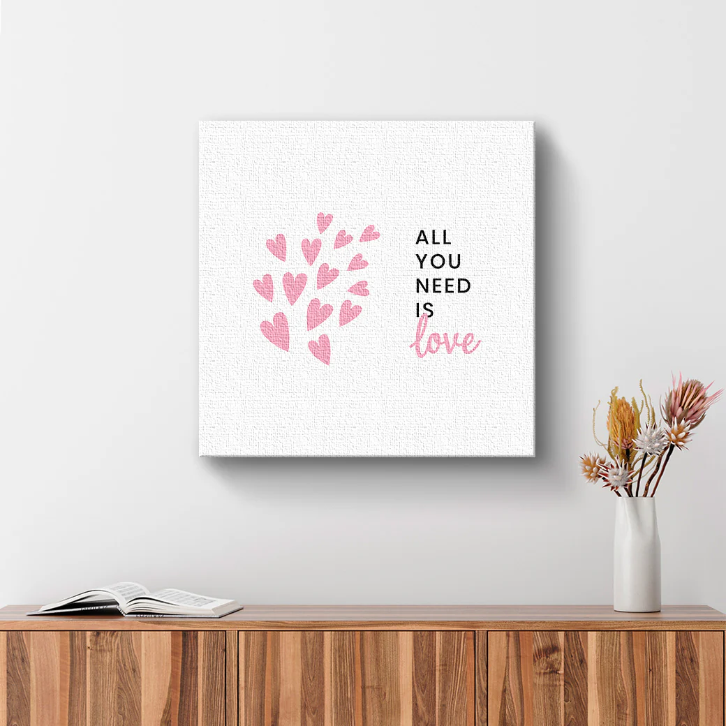 Este cuadro decorativo es ideal para tus ambientes minimalistas y agregarles un poco de color con la frase «All you need is love», por Macao.