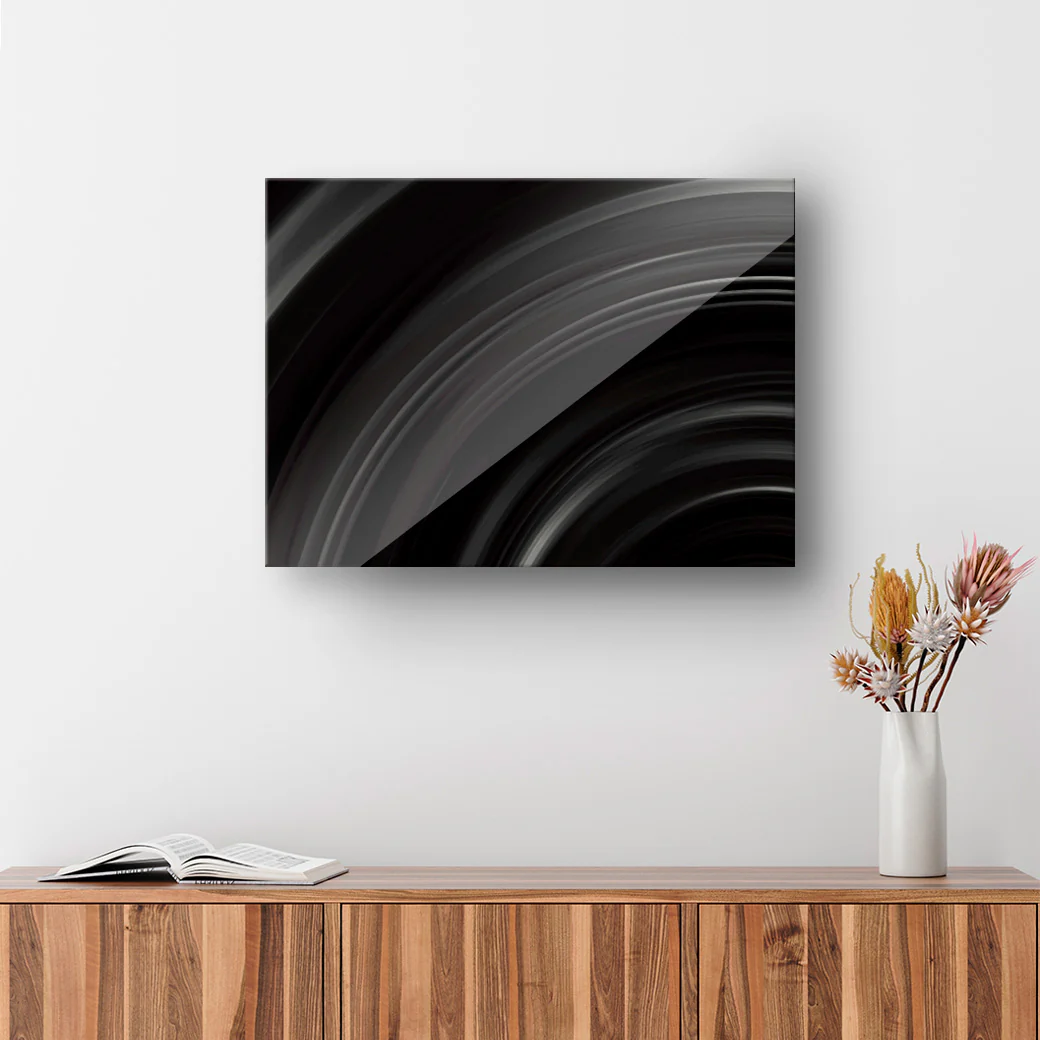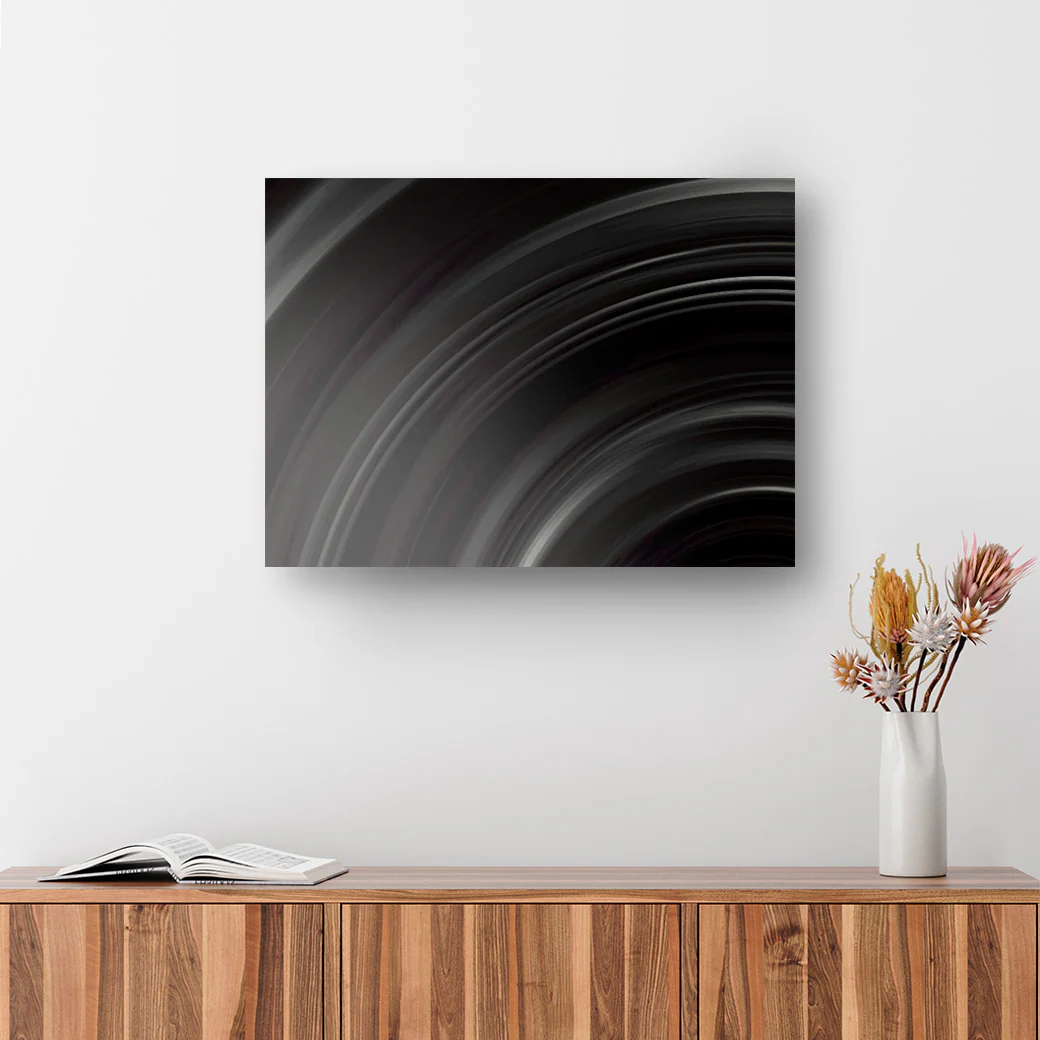 «Obra abstracta en blanco y negro, formando diferentes tamaños de arcos». Emanuel Barrera. Dale un toque moderno a tu espacio con este cuadro de ondas blancas.