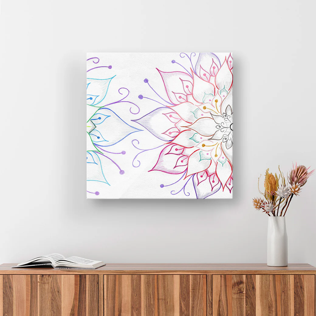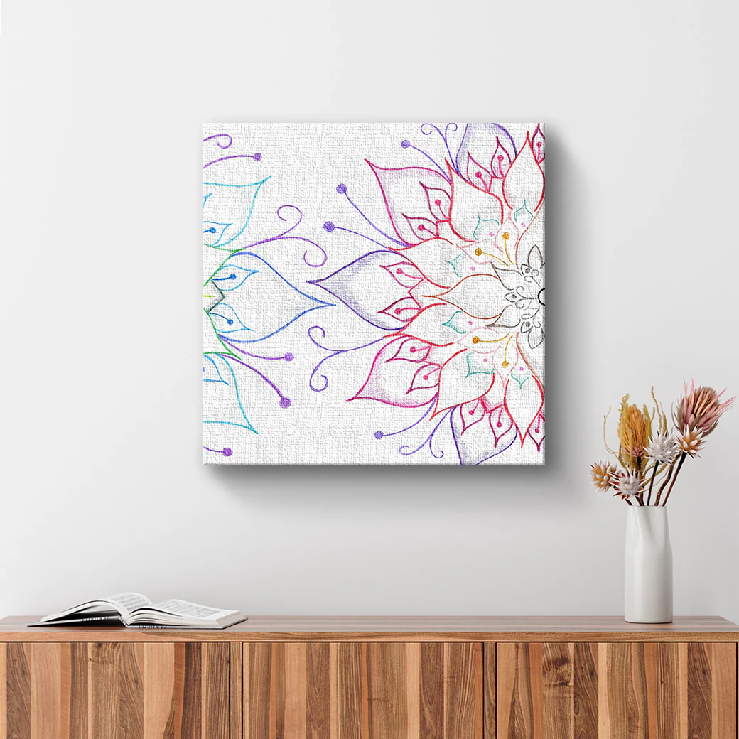 Es una ilustración de una flor con estilo de mandala en diferentes colores, por el artista Torco. Una decoración moderna y minimalista para tu espacio.