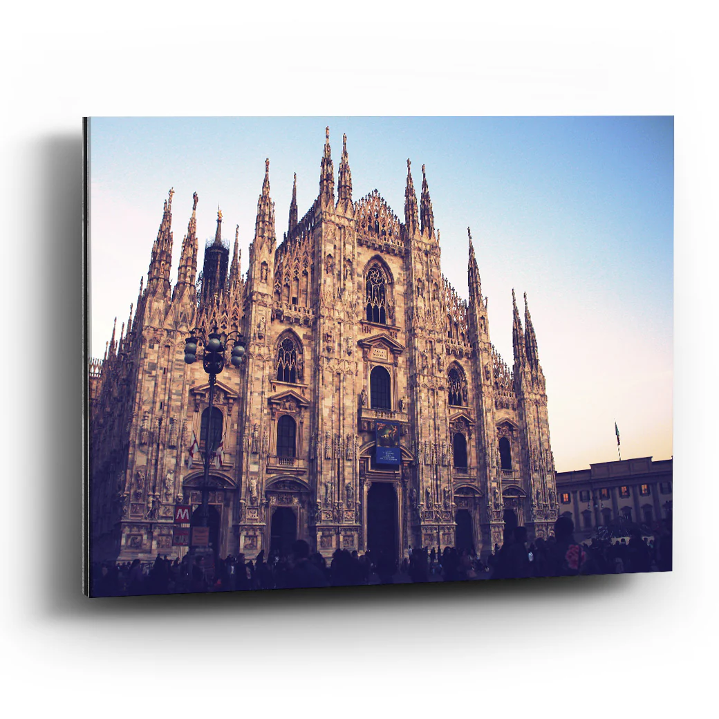Esta fotografía del Duomo de la ciudad de Milan, es una catedral gótica, de las más importantes estructuras católicas en el mundo.