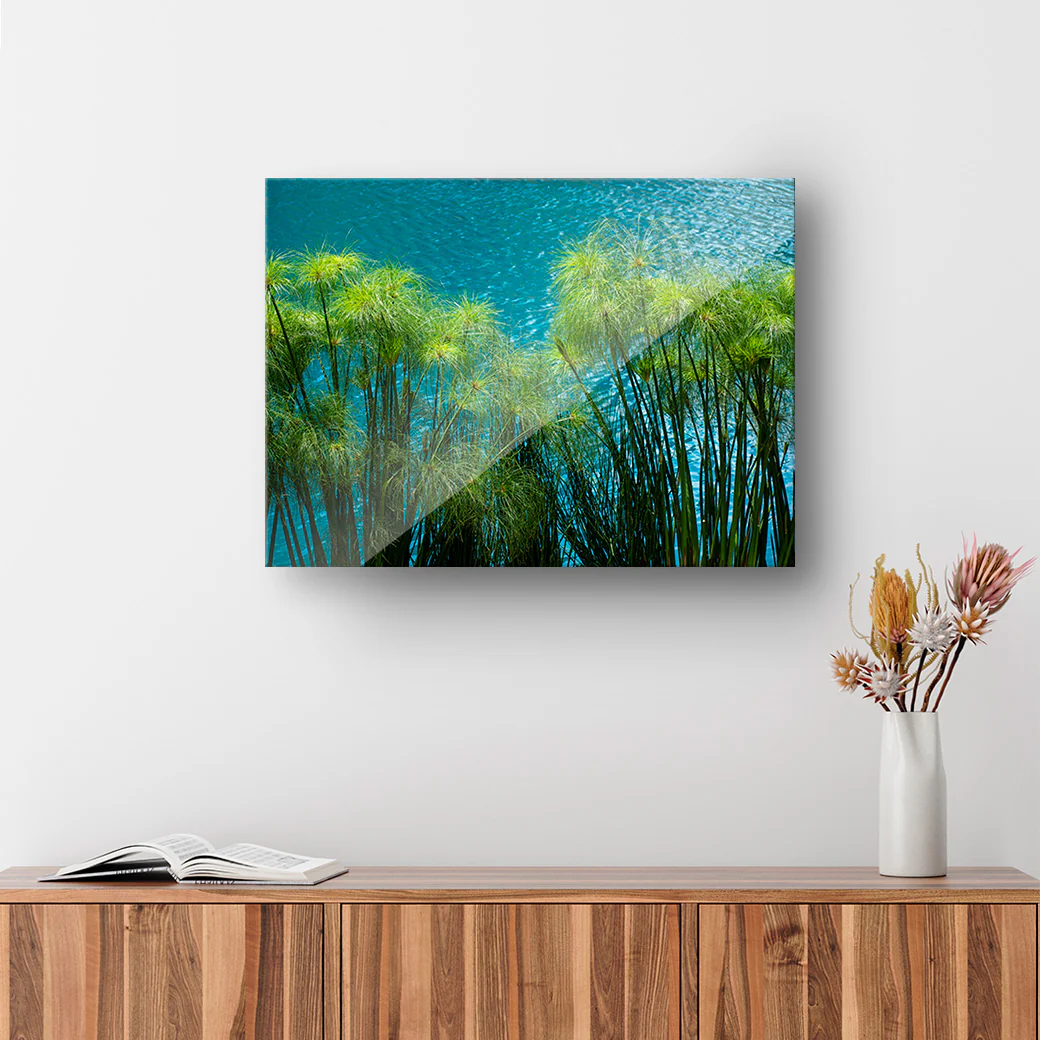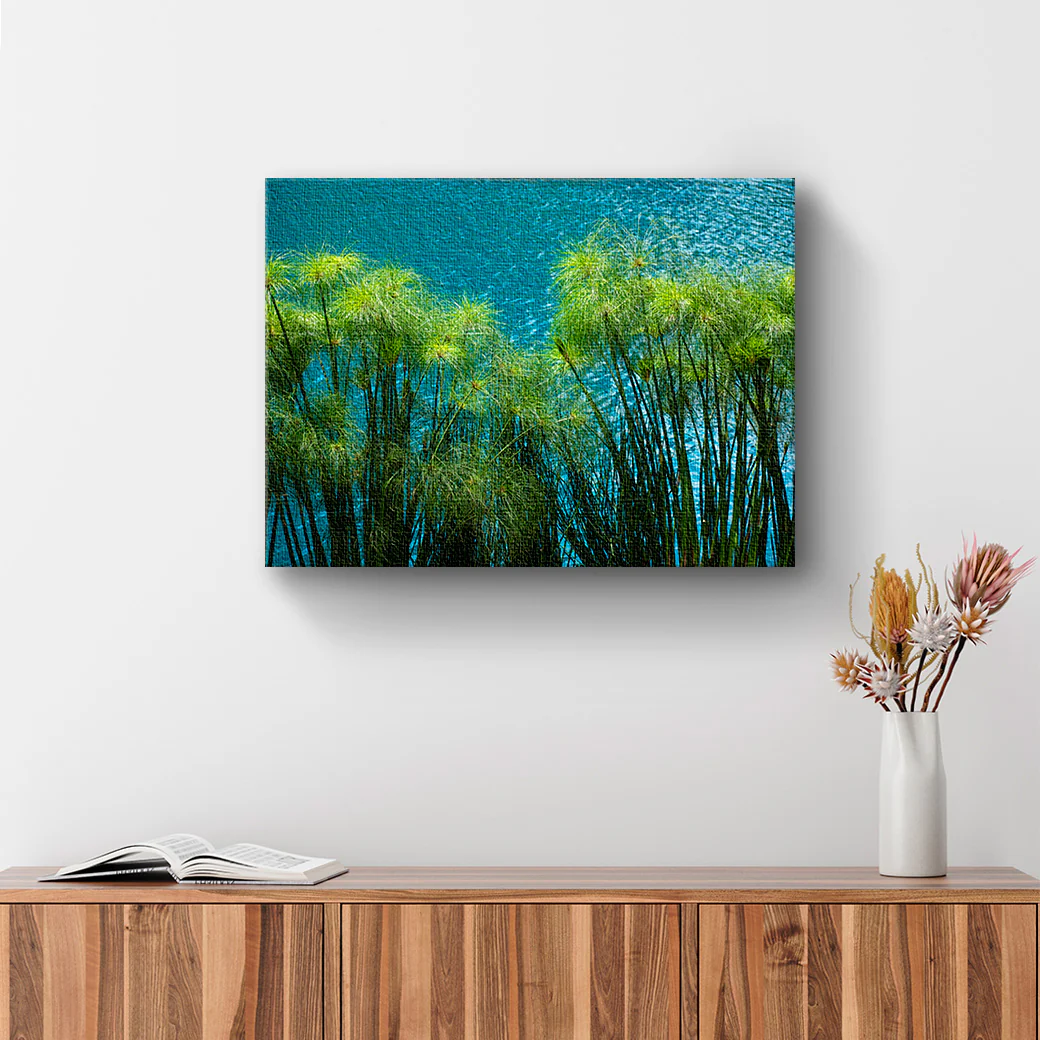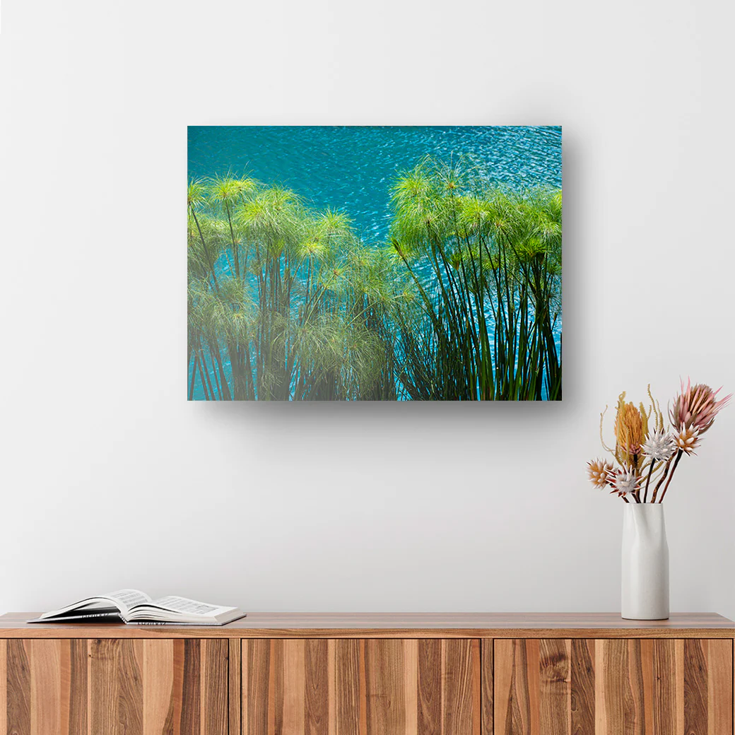 Este cuadro muestra una fotografía de plantas con el fondo del color azul del agua, tomada por el fotógrafo Javs Mondragon. Ideal para una decoración moderna.