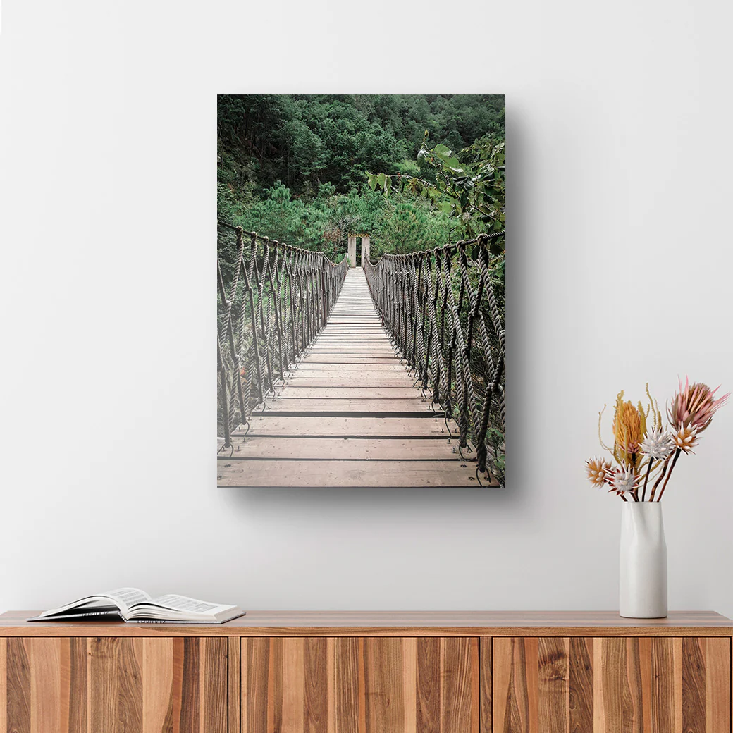 Un cuadro que muestra la fotografía de un puente rústico justo a las afueras de Puebla, México, tomada por el fotógrafo León Hernan.