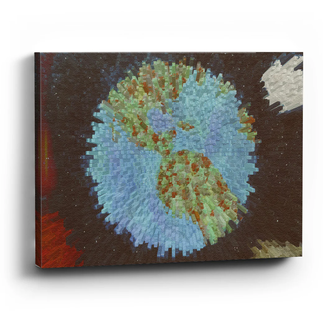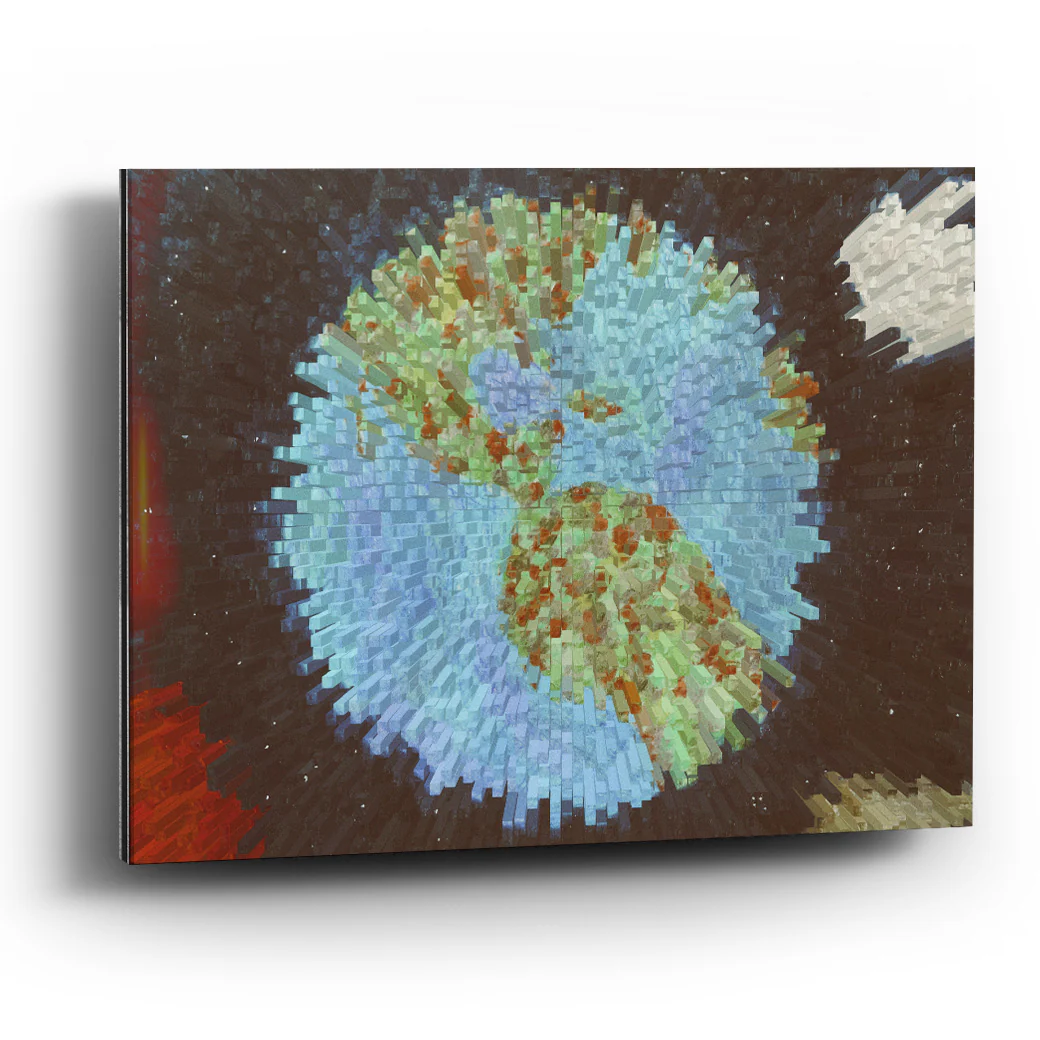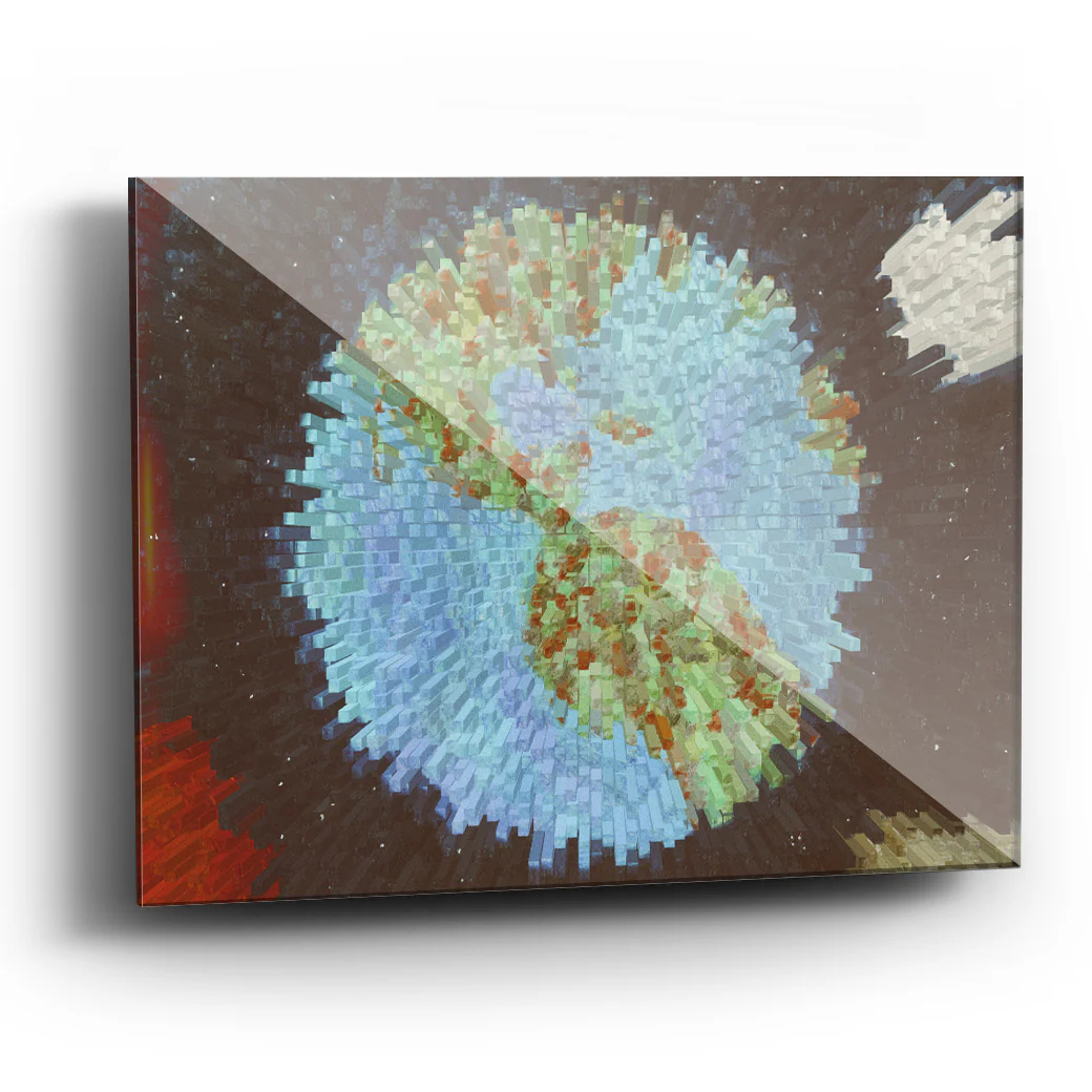 Muestra una composición geométrica de nuestro planeta Tierra, por el artista Emanuel Barrera. Una decoración ideal para ambientar tus espacios.