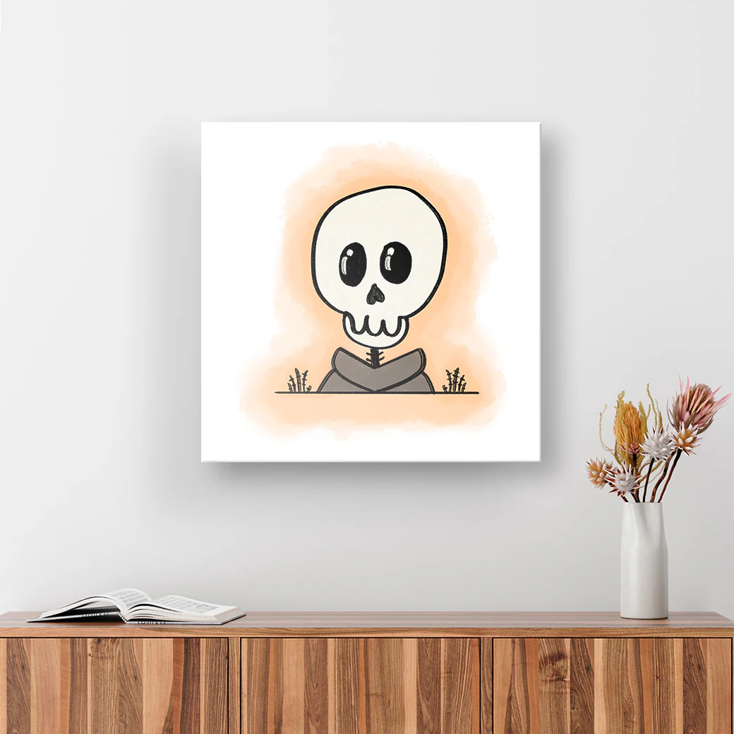 Este cuadro muestra una adorable ilustración infantil con temática de Halloween, por el artista Torco. Ideal decoración para las festividades.