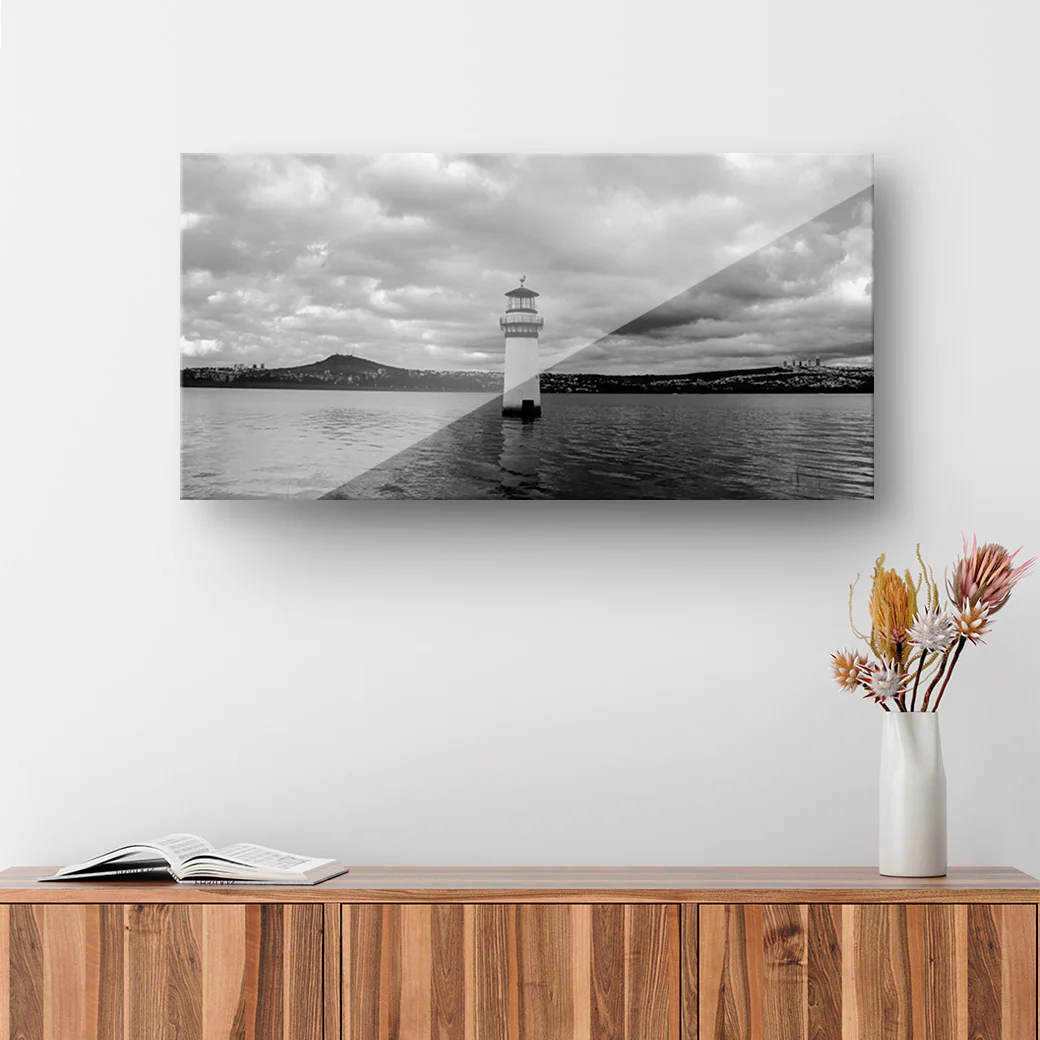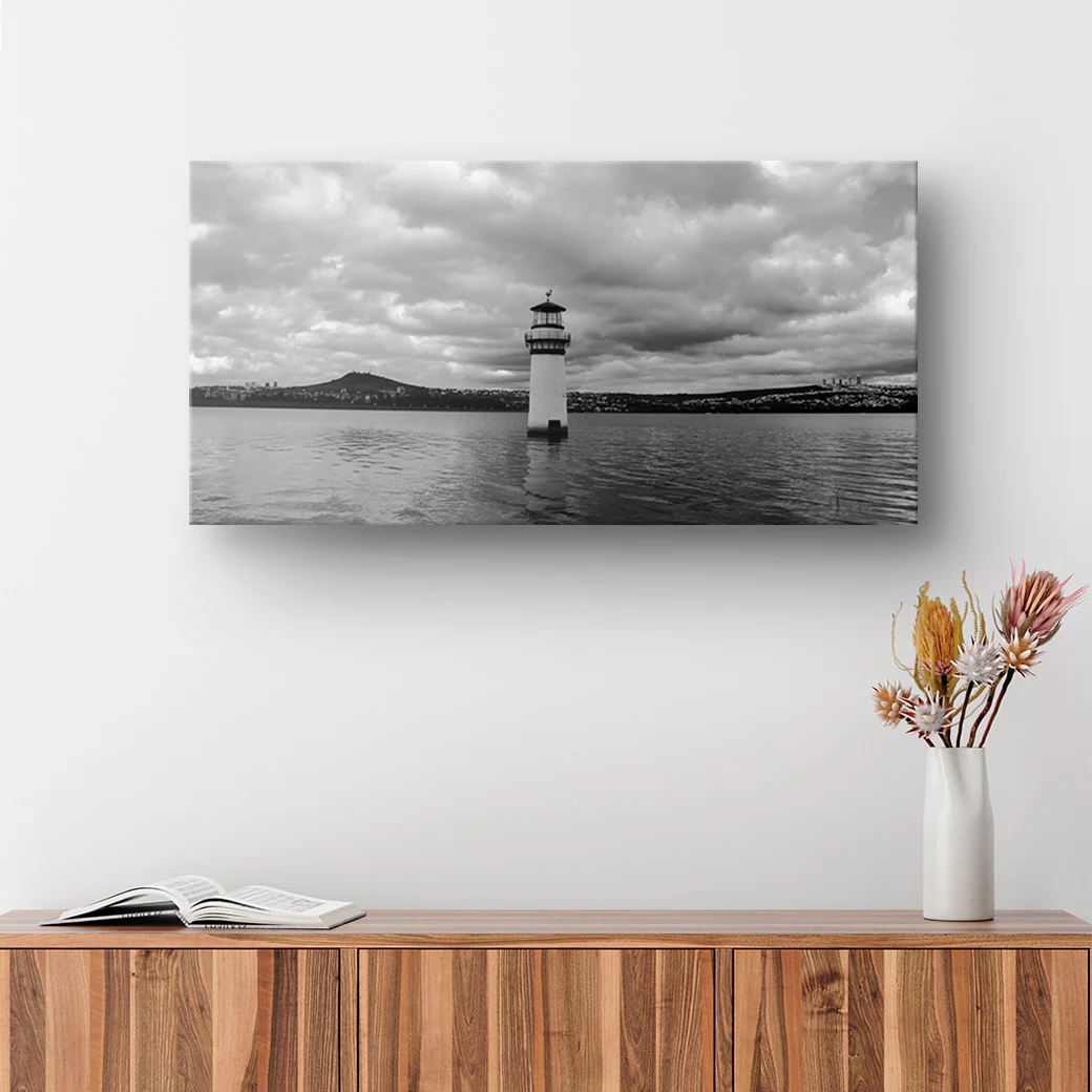 Muestra una fotografía en blanco y negro del faro ubicado en el parque metropolitano de León, Guanajuato, tomada por el fotógrafo HCTR RAMÍREZ.