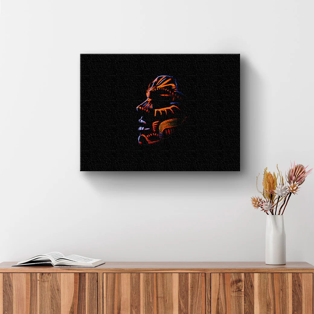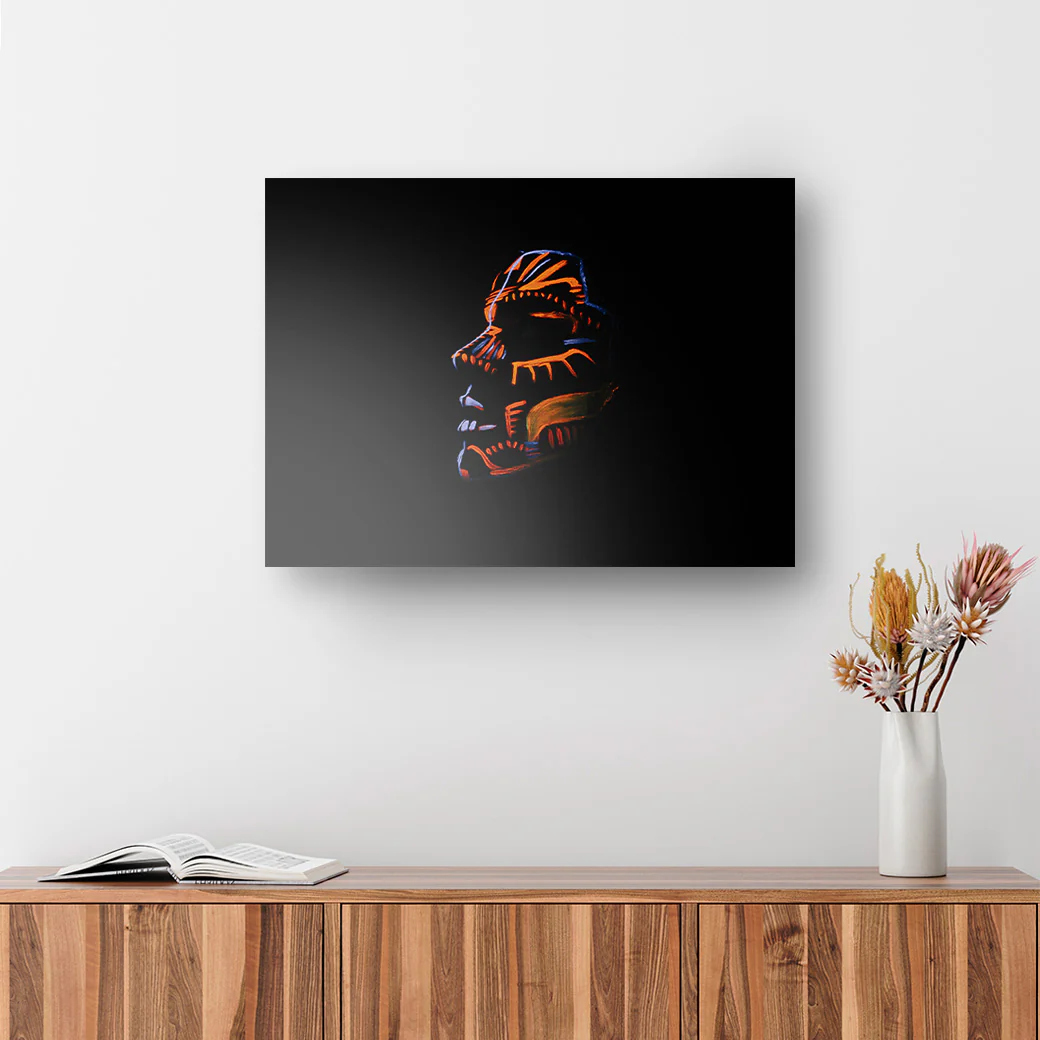 «Retrato inspirador y hermosa decoración». Víctor R. M. Vázquez. Cuadro con una cara pintada de colores, ideal para decorara un espacio dedicado a la cultura.