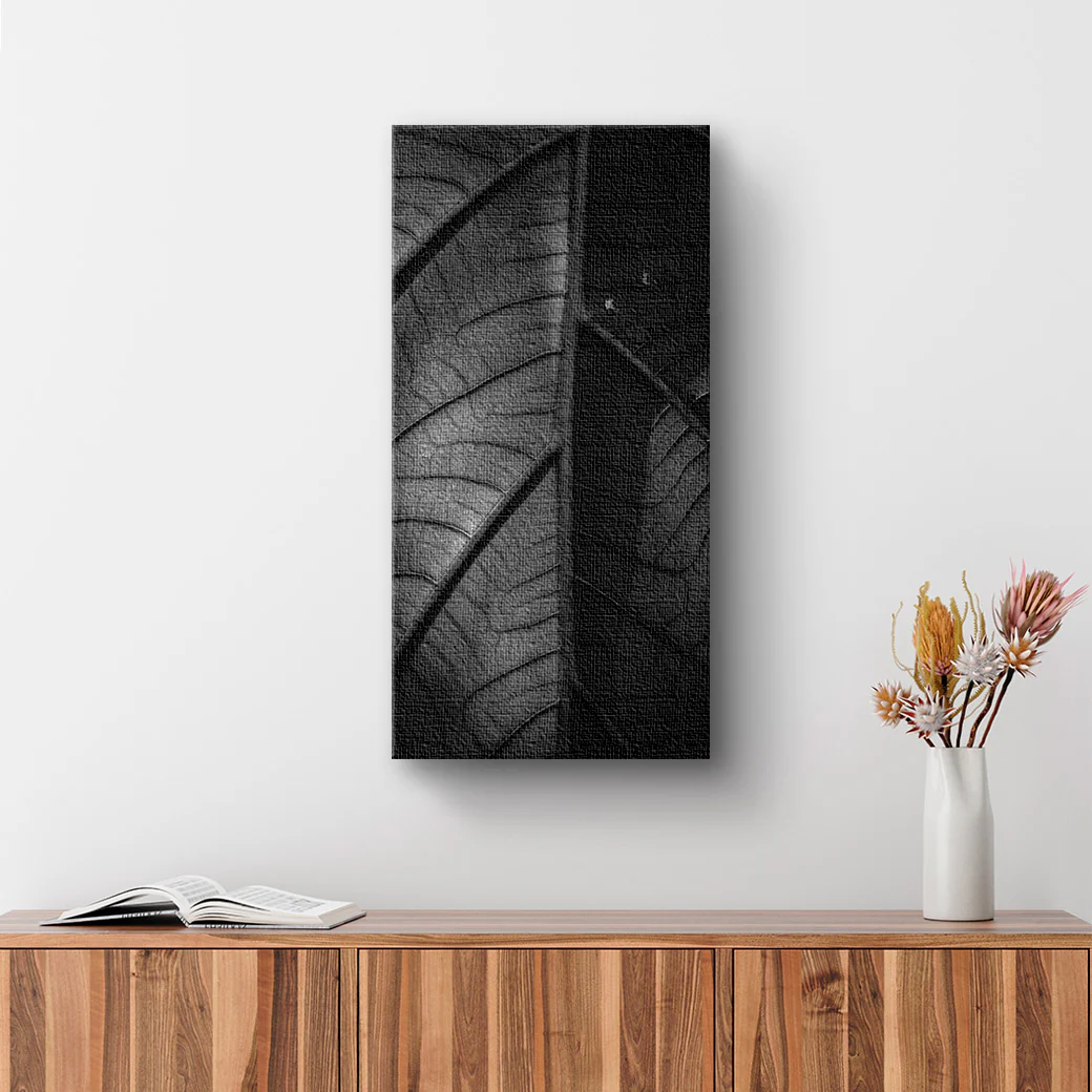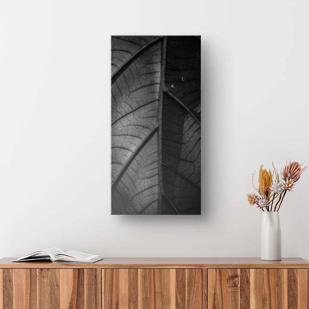 ¡Compra un cuadro decorativo de los detalles de una hoja! Una imagen con un estilo sobrio y artístico perfecta para espacios de tranquilidad y espera.