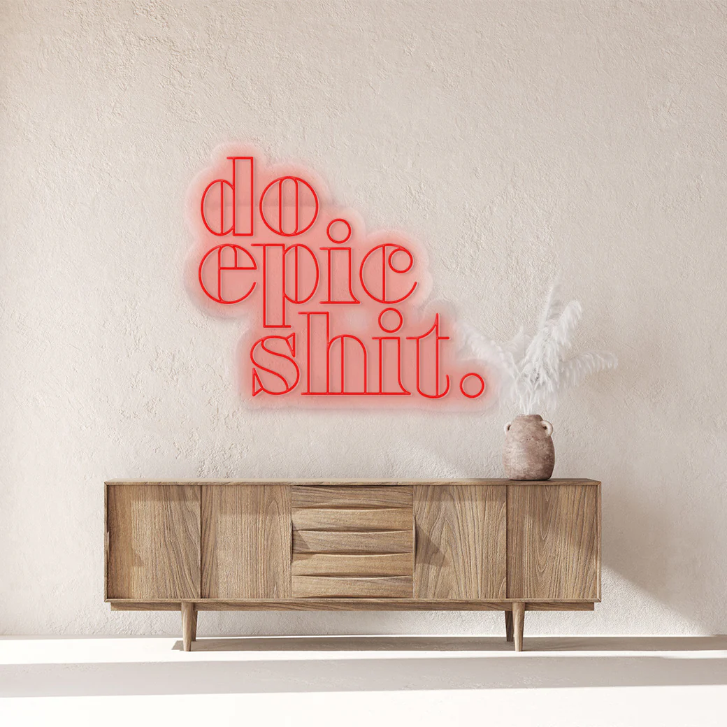 ¡Haz cosas grandes con este neón! Inspira a todas aquellas personas que pasen cerca de tu espacio con este letrero neón que hace referencia a hacer cosas épicas.
