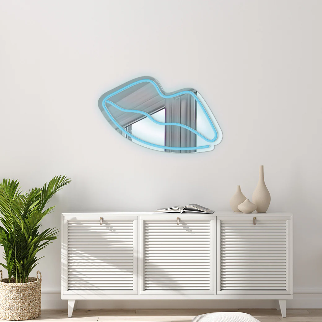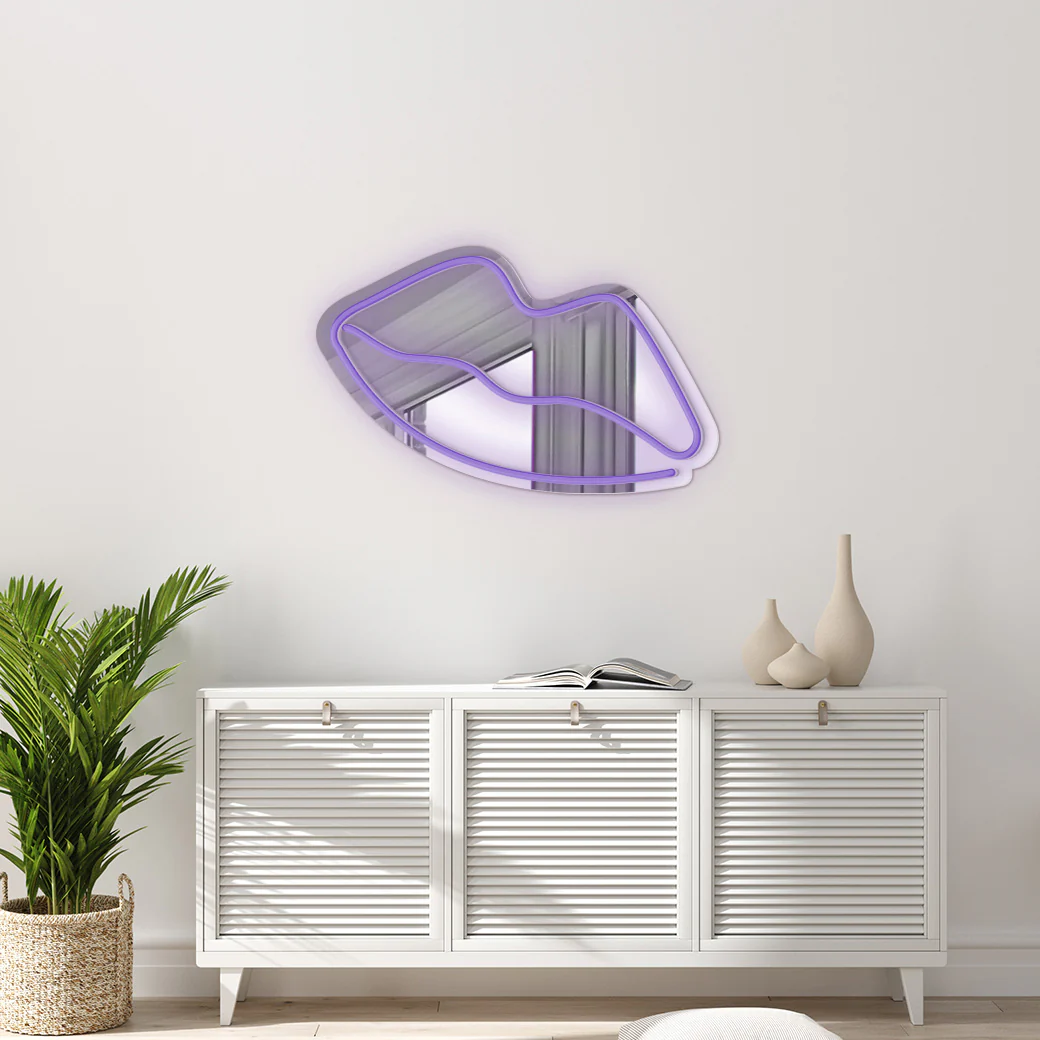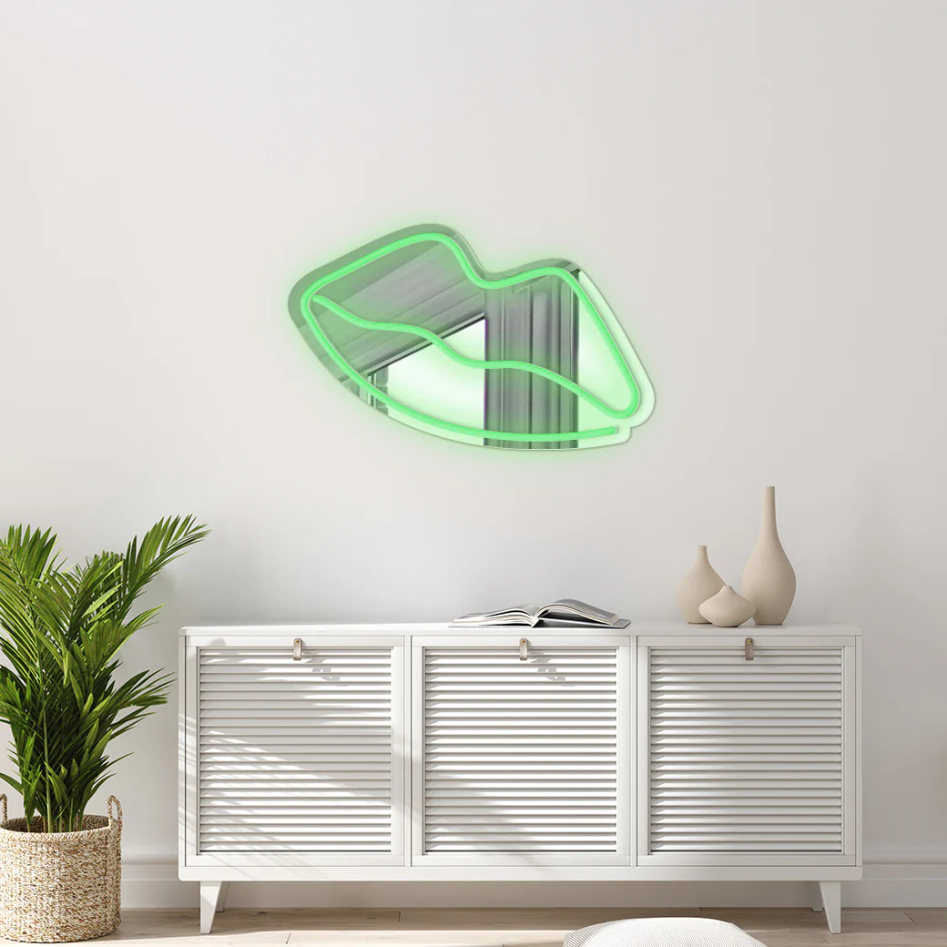Dale un toque de glamour a tu espacio con este espejo neón que te seducirá con su encanto. El espejo tiene un diseño sensual y atractivo.