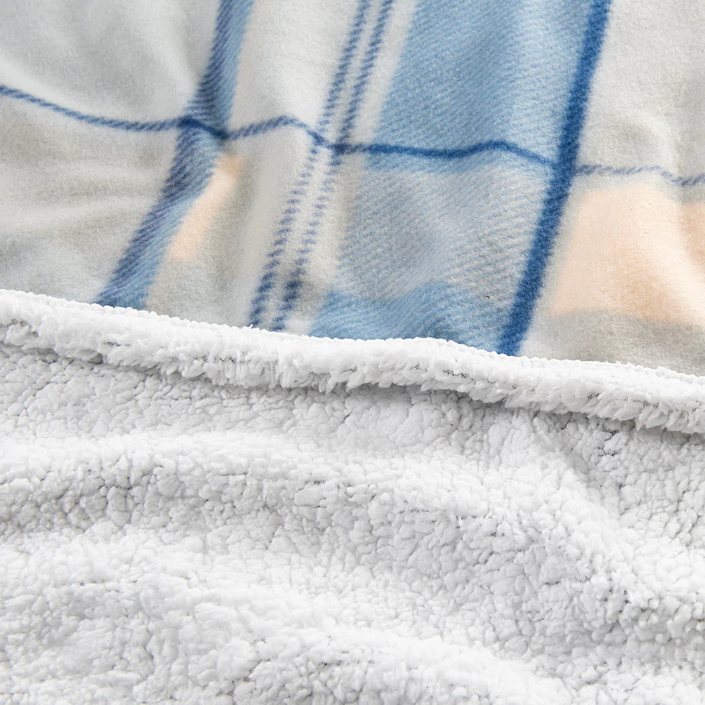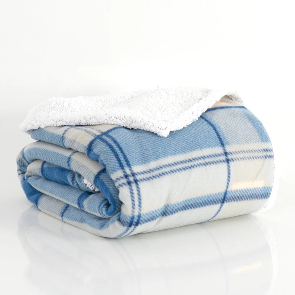 Frazada 1.5 Plazas Polar Sherpa Tartán Azul