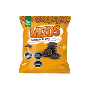 Galletas de arroz integral y sésamo negro. Libres de gluten, lactosa, grasas trans y colesterol, veganas, contienen 86% de ingredientes orgánicos, puede contener trazas de soja, alto en calorías.