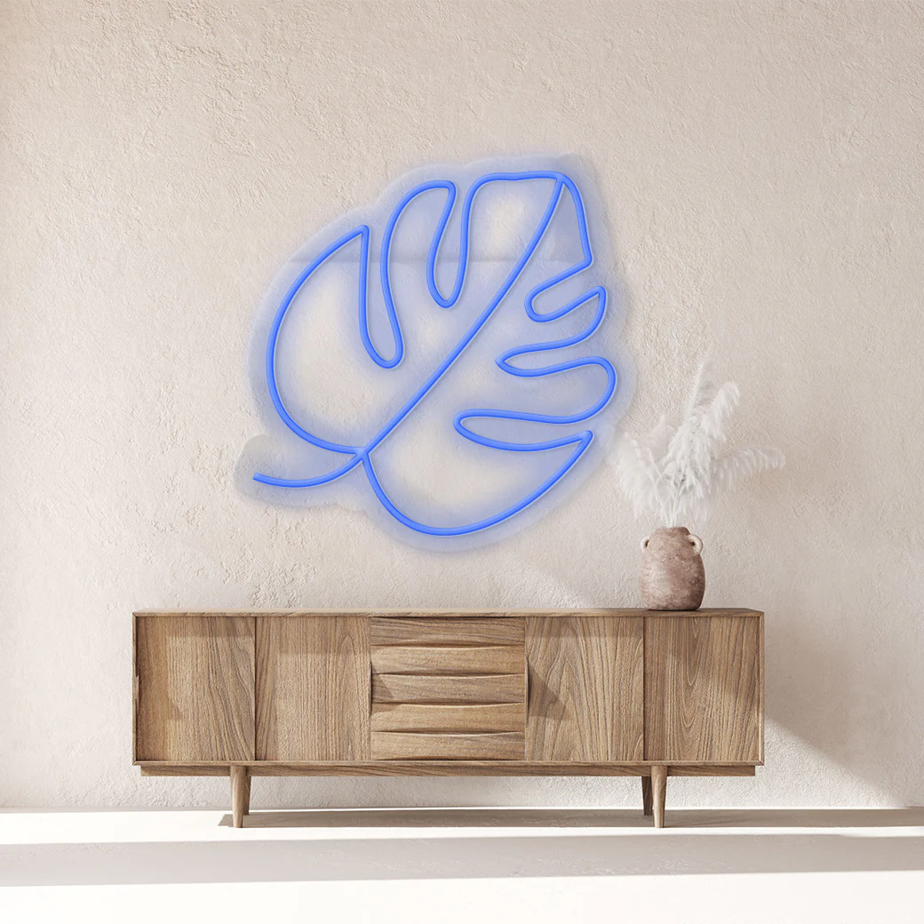 Compra un neon de hoja para tu decoración. La hoja de Monstera se usa mucho en diseños, está muy de moda y le da un toque muy especial a tus espacios.