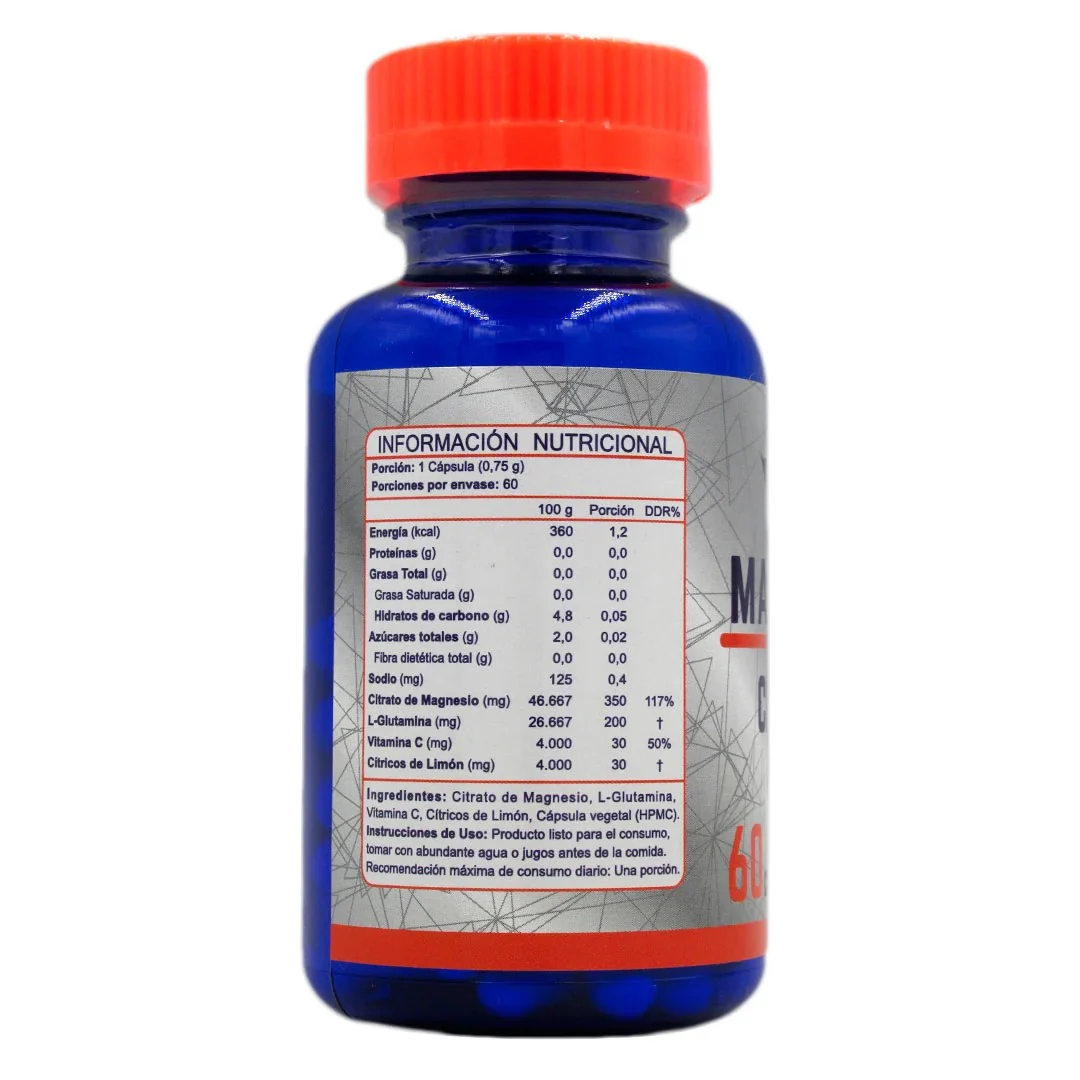 Citrato de magnesio, L-Glutamina, Vitamina C, Limón Polvo, HPMC (de la cápsula), agua.