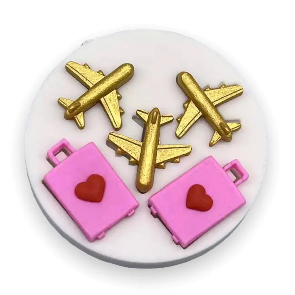 ¡A volar por lo más alto! Por ello, con este molde puedes crear apliques hermosos para cupcakes, fresas, paletas y tortas temáticas con la forma de un avión en miniatura y equipaje para los fans de una de las mejores invenciones.