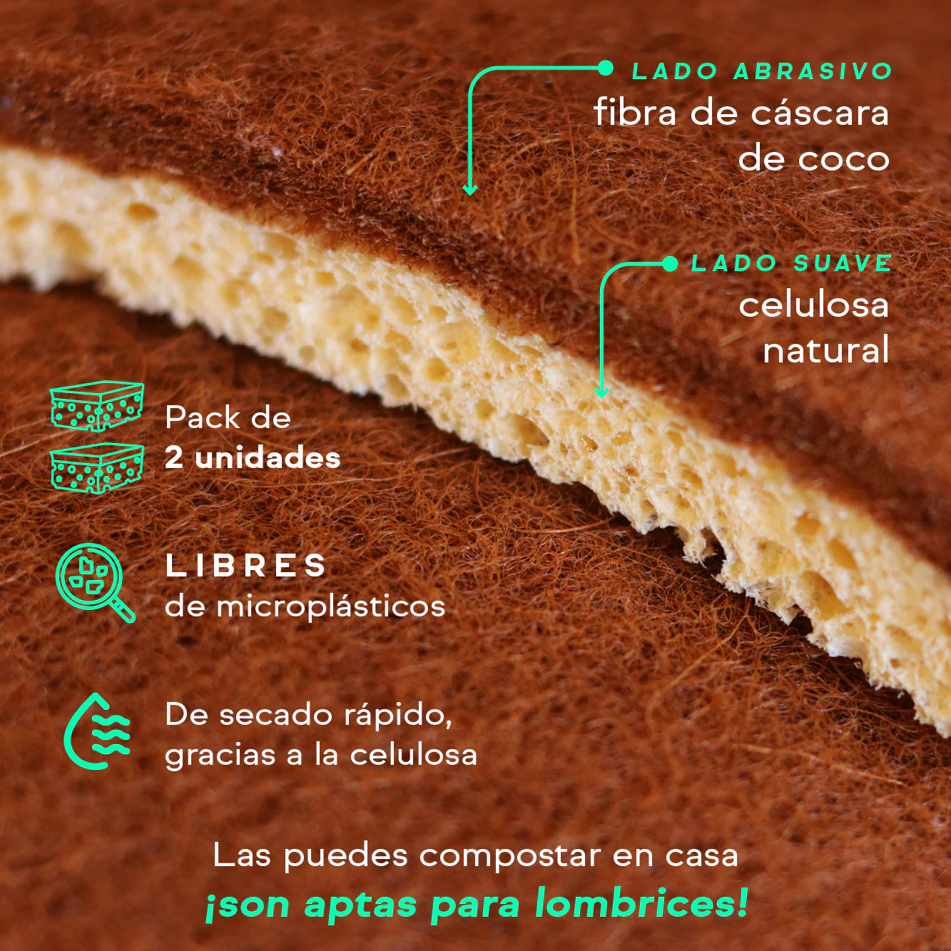 Pack 2 Esponjas Ecológicas de Celulosa y Fibra Coco – FreeMet