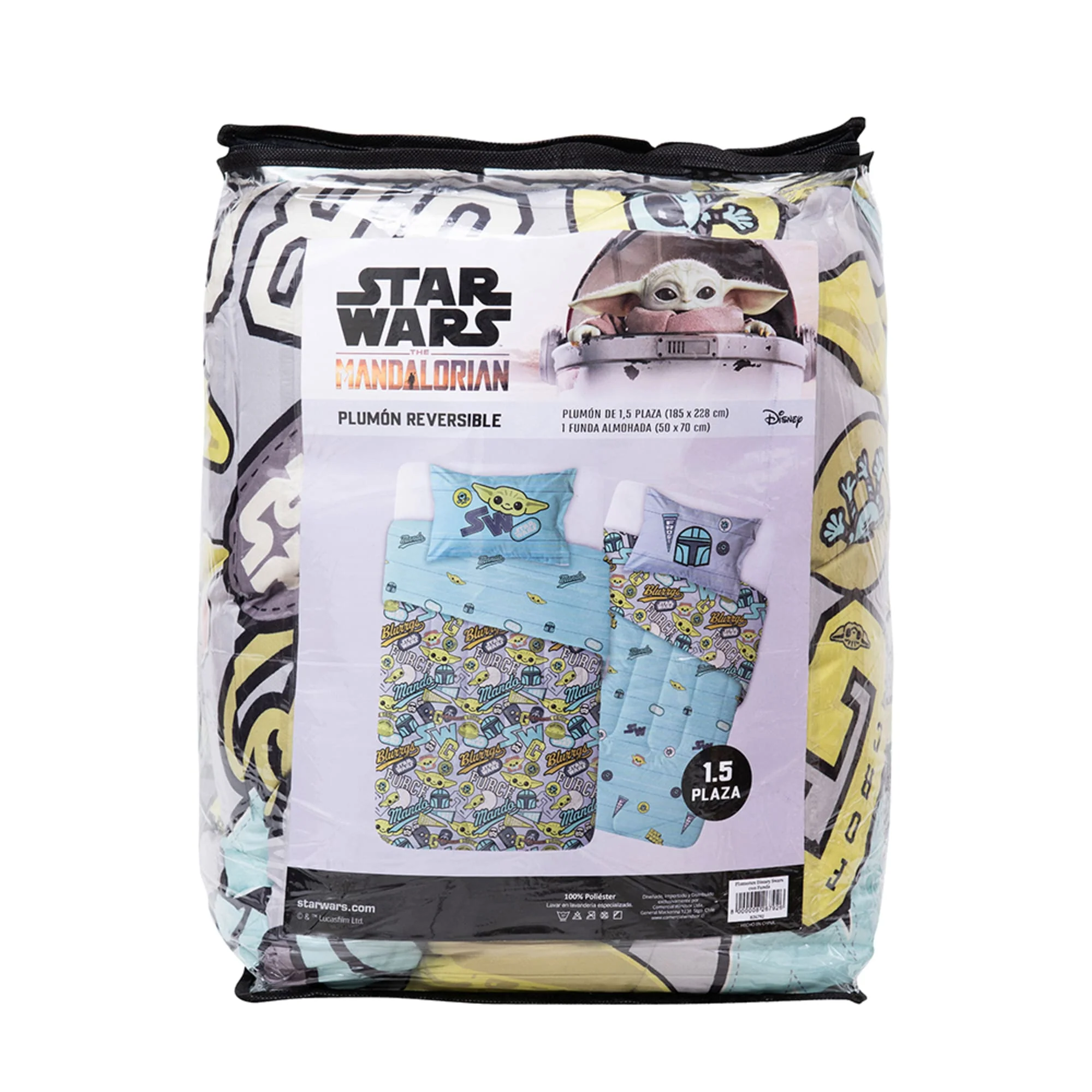 Lleva la aventura galáctica a tus noches con el Plumón 1.5 Plazas Microfibra Star Wars Mando, inspirado en el legendario cazador de recompensas de The Mandalorian. Su diseño estampado convierte tu cama en un espacio lleno de estilo y emoción para los verdaderos fans de Star Wars.
