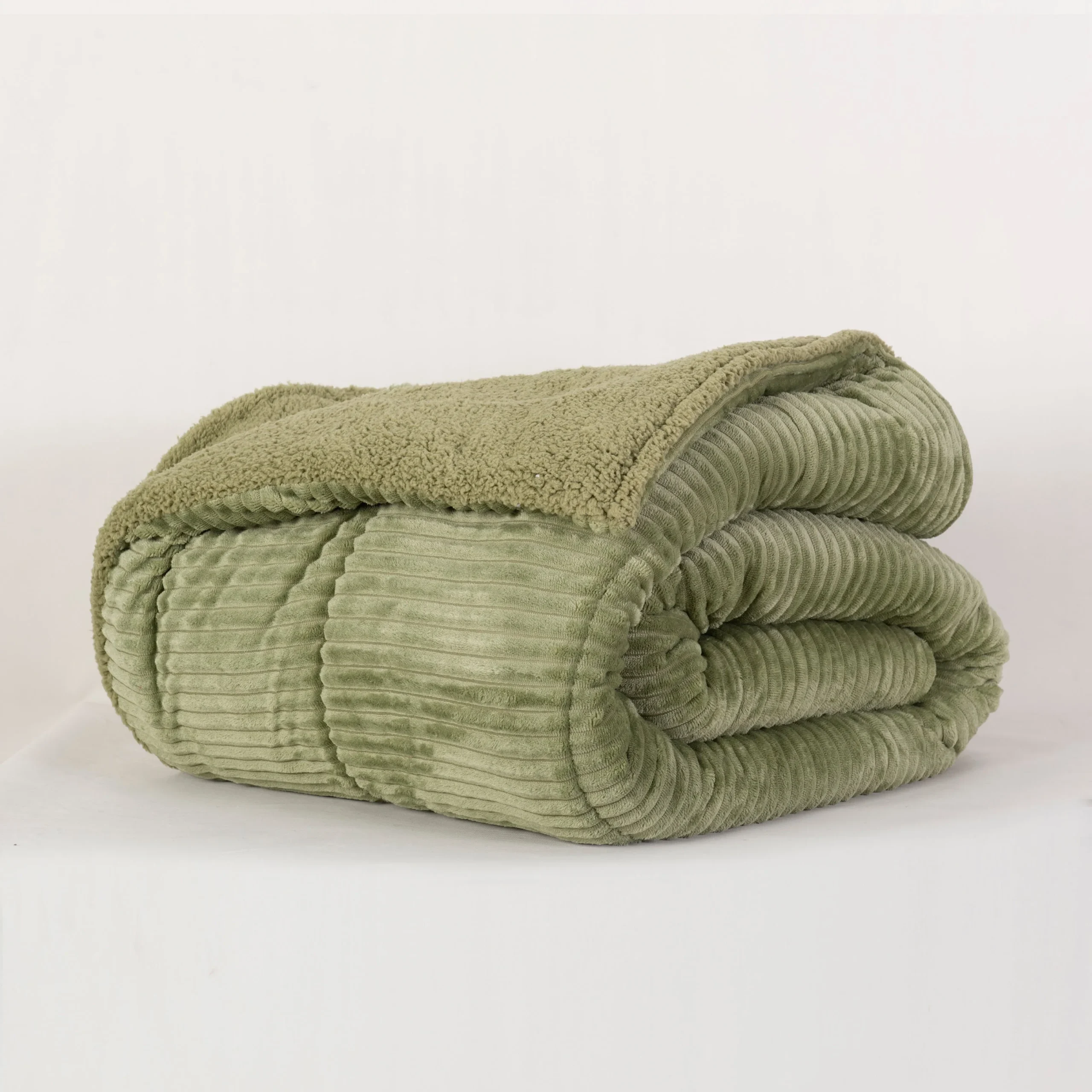 En la parte delantera, está confeccionado con coral de alta calidad, que simula el efecto del corduroy con la suavidad del flannel, aportando un estilo sofisticado y acogedor. En el reverso, su cálido sherpa al tono envuelve tu cuerpo con una sensación de abrigo inigualable, brindando el aspecto y la textura de lana de oveja para mayor calidez.
