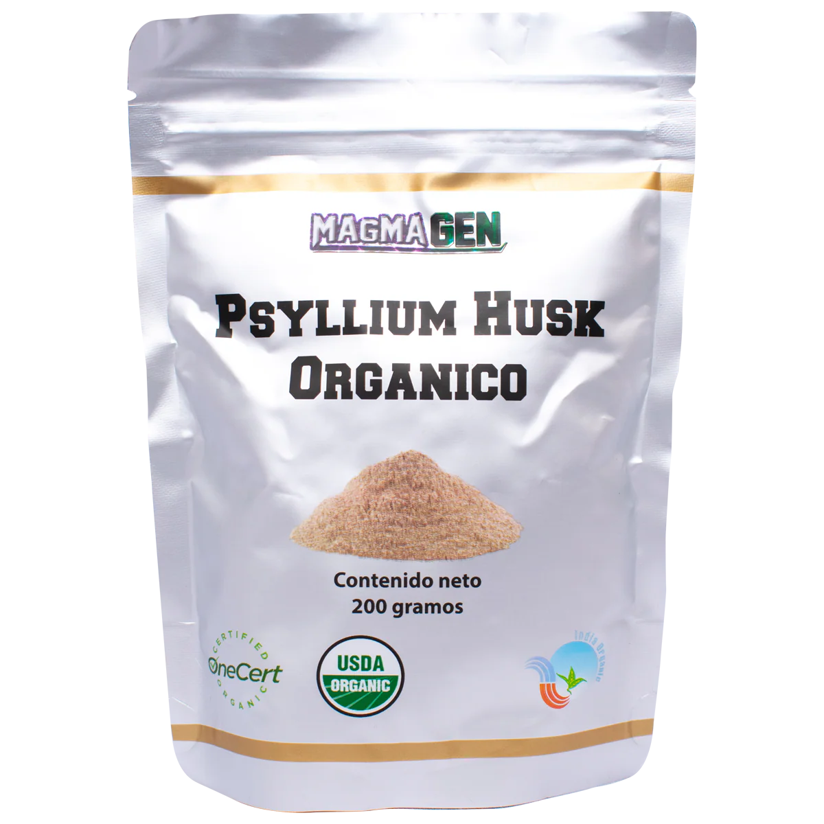 El Psyllium Husk Orgánico Magmagen es una de las fuentes más puras y efectivas de fibra soluble natural, proveniente de la cáscara de las semillas de Plantago ovata, cultivadas orgánicamente en la India.