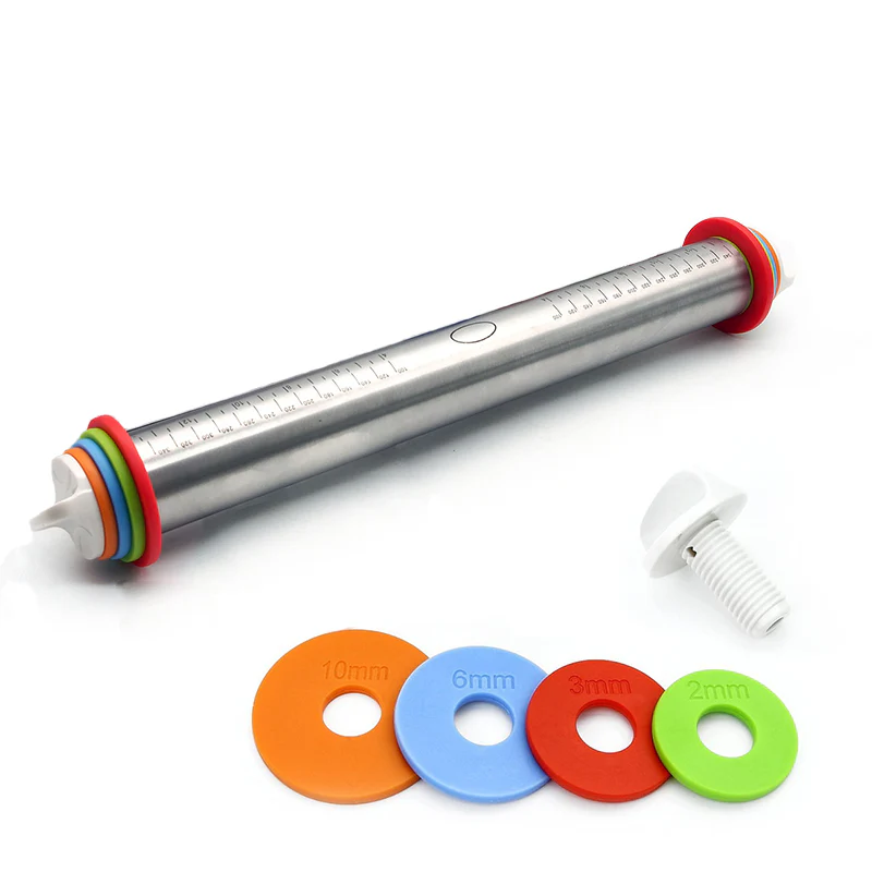 Material: rodillo de acero inoxidable; anillos de plástico