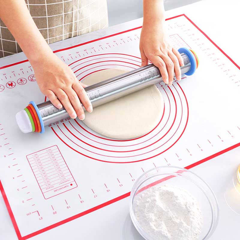 Este rodillo suave y extra ancho es perfecto cuando se trabaja con piezas grandes de fondant para cubrir pasteles. La superficie antiadherente facilita el manejo de grandes cantidades de fondant. Simplemente espolvorea la superficie con azúcar glas y enróllala al tamaño que necesitas, luego levanta el fondant de la superficie de trabajo al pastel. Lograras tener el grosor perfecto en todo momento. También es ideal para el despliegue de masa de pastelería y cortezas de pastel.