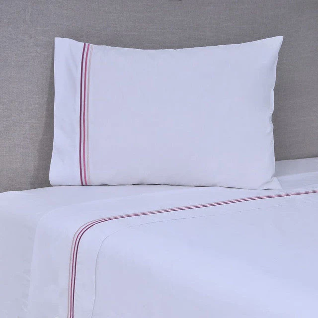 Set de sábanas con una terminación bordada en colores, ideal para combinar con cubrecamas y cojines en los mismos tontos del bordado.