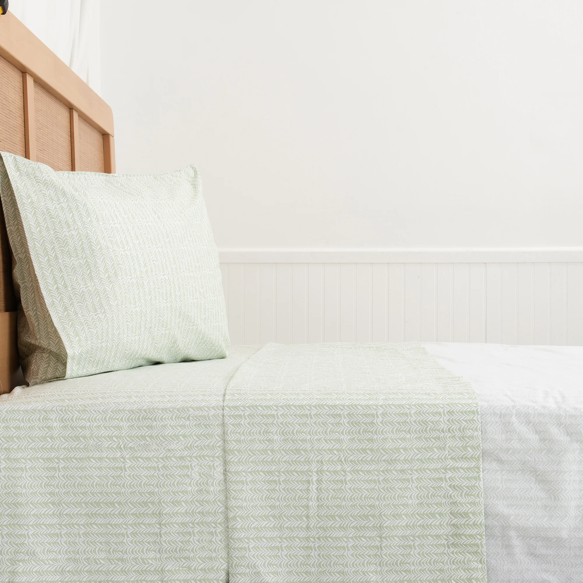 Confeccionada con una mezcla de 50% algodón y 50% poliéster, ofrece una textura suave, fresca y duradera, perfecta para el uso diario. Su tejido de 200 hilos asegura un acabado liso y sofisticado, manteniendo sus colores y suavidad lavado tras lavado.