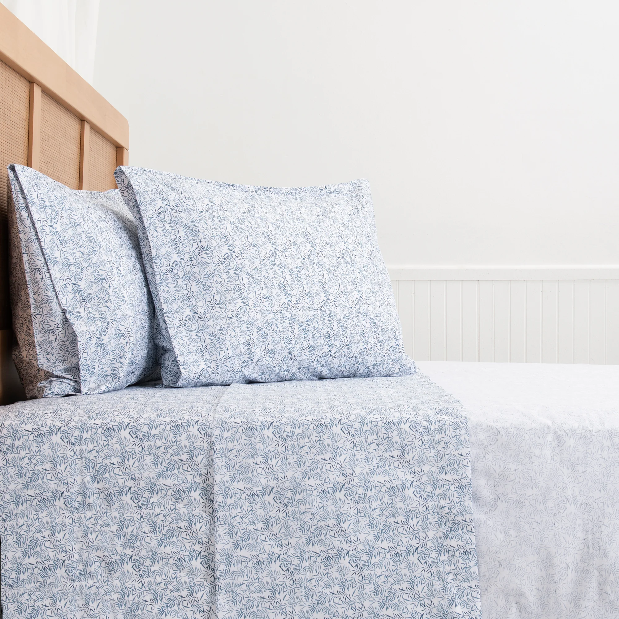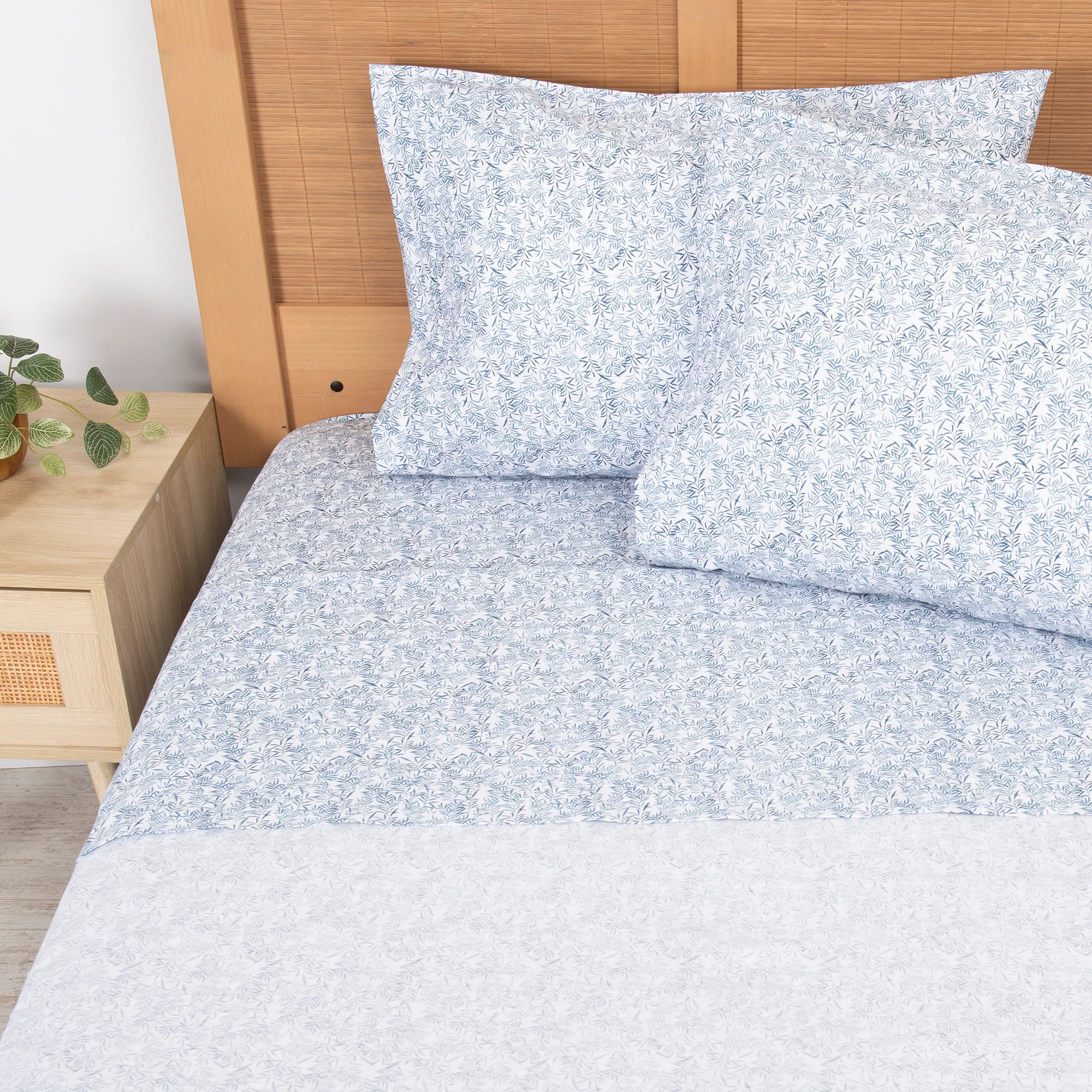 Confeccionada con una mezcla de 50% algodón y 50% poliéster, ofrece una textura suave, fresca y duradera, perfecta para el uso diario. Su tejido de 200 hilos asegura un acabado liso y sofisticado, manteniendo sus colores y suavidad lavado tras lavado.