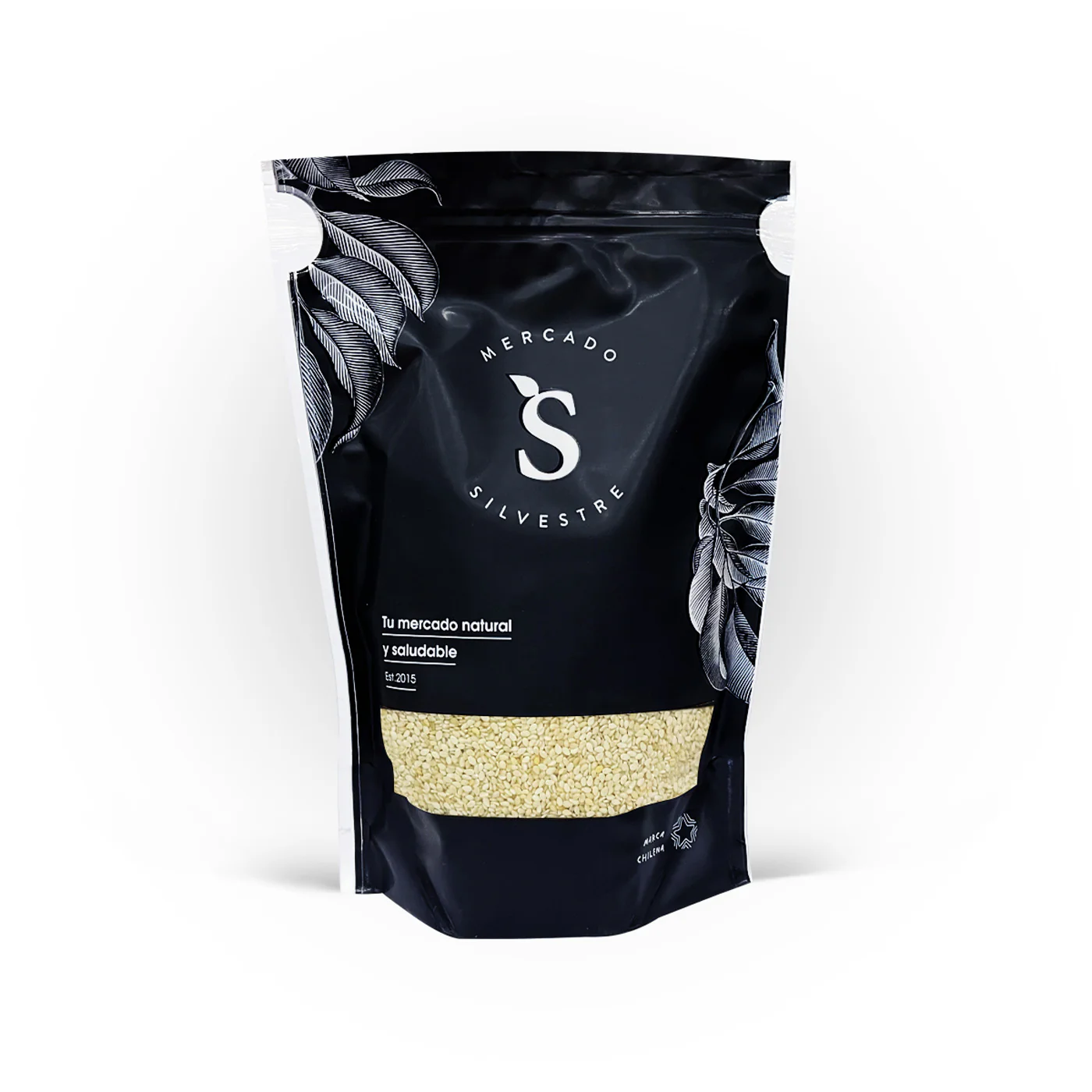 El sésamo blanco, viene pelado y sin tostar. Es la forma más popular de comerlo ya que viene listo y es de sabor más suave que en su versión tostada. Siendo menos invasivo.