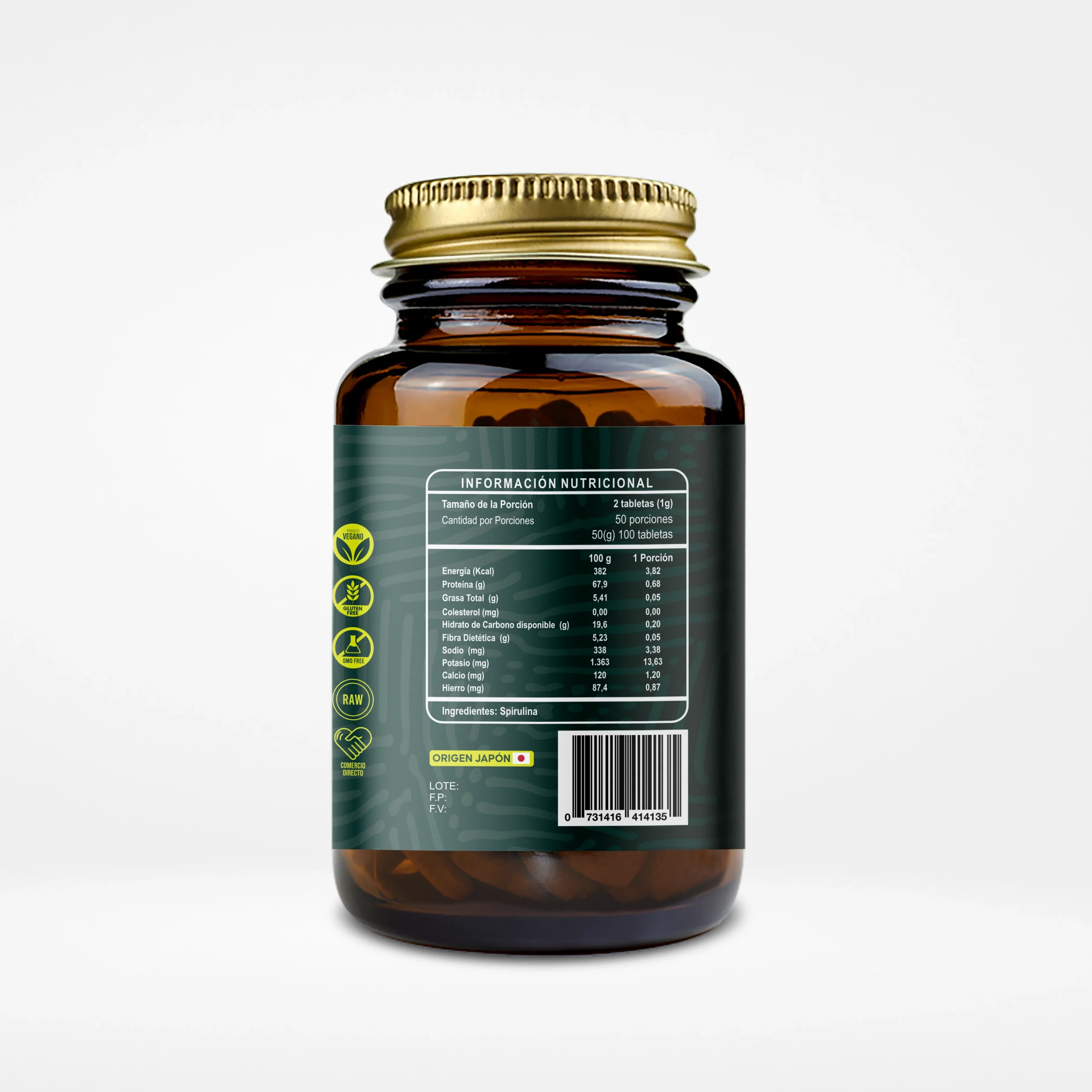 Spirulina Orgánica 500mg 100 Tabletas (50 días) – RI&CO