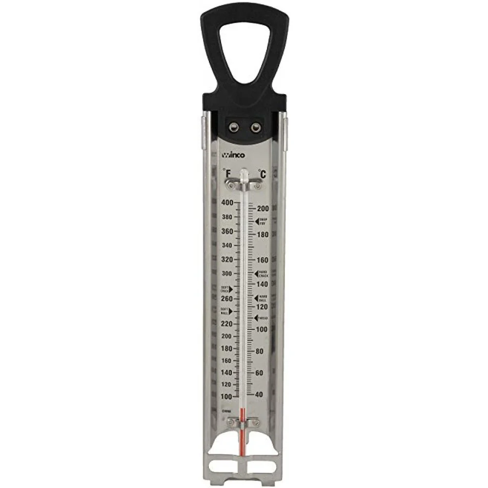 Termómetro de caramelo / freír, rango de temperatura de 40 a 200°C. El mismo diseño de termómetro simple y excelente, este modelo cuenta con siete pulgadas adicionales de vástago de acero inoxidable para facilitar la toma de temperatura de carnes grandes o ollas profundas de aceite para freír.