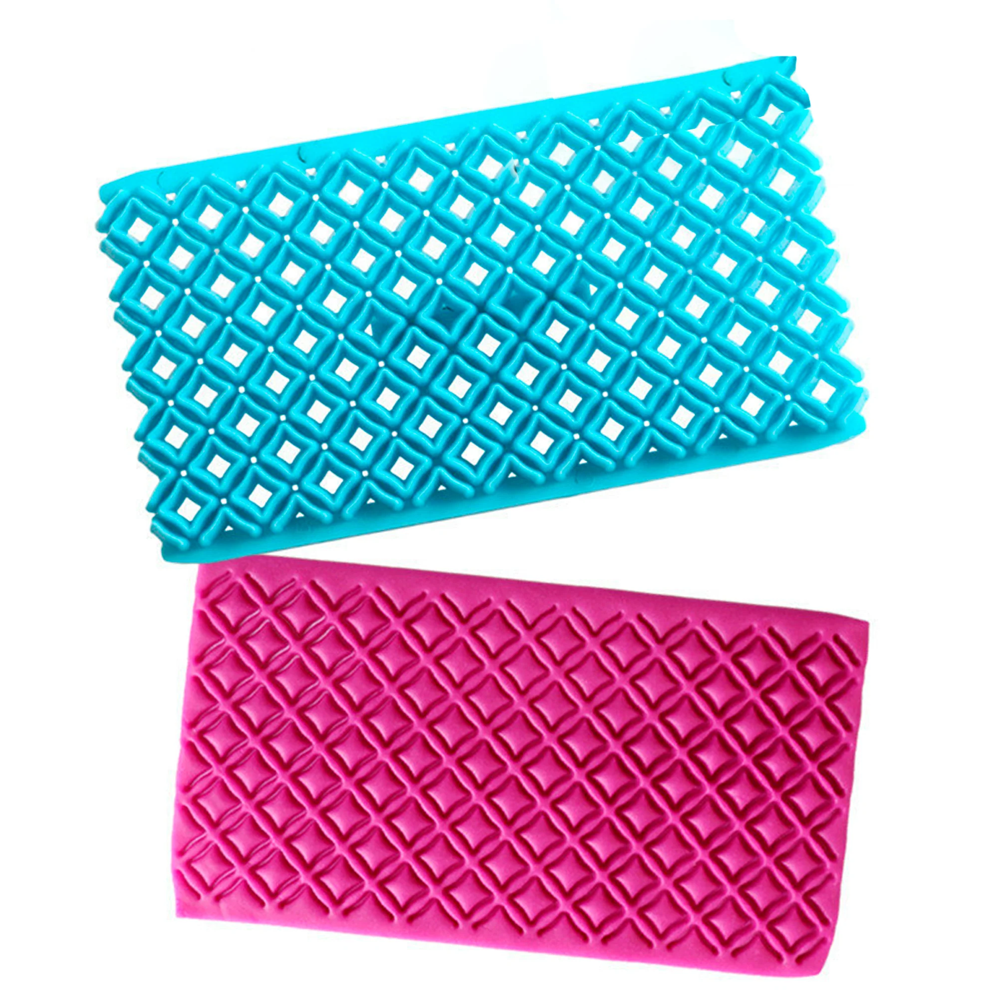 Plantilla decorativa para añadir texturas y relieves en forma de diamante para superficies de fondant, pastillaje, mazapán y pastas moldeables, solo debes pasarlo en superficies planas y presionar de forma uniforme para dejar mejor marcada la textura. Su material de fabricación es 100% de plástico de calidad Alimentaria, Material no tóxico y sin olor.