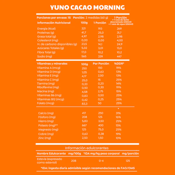 Yuno Morning Shake Cacao Morning Sin Azúcar 900gr – Cáscara Foods